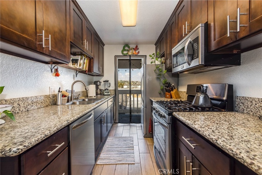 Welcome to 1148 Molino Ave. This top floor, 2 bedroom 2 bath is a rare find in this amazing pet friendly condo complex. Walking through the front door, you will find a floor plan that flows perfectly and is filled with natural light. The living room has vaulted ceilings that give this condo a spacious yet cozy feel. The completely remodeled kitchen features granite countertops, soft close cabinets, and stainless steel appliances. From the kitchen you step out onto your large patio with beautiful views of Signal Hill. Other features of this turnkey condo include espresso laminate flooring, remodeled bathrooms with granite countertops, vaulted ceilings in both bedrooms, low HOA's, and much much more. This gated community provides a covered parking space and is located close to freeways, shopping and the beach. Welcome home.