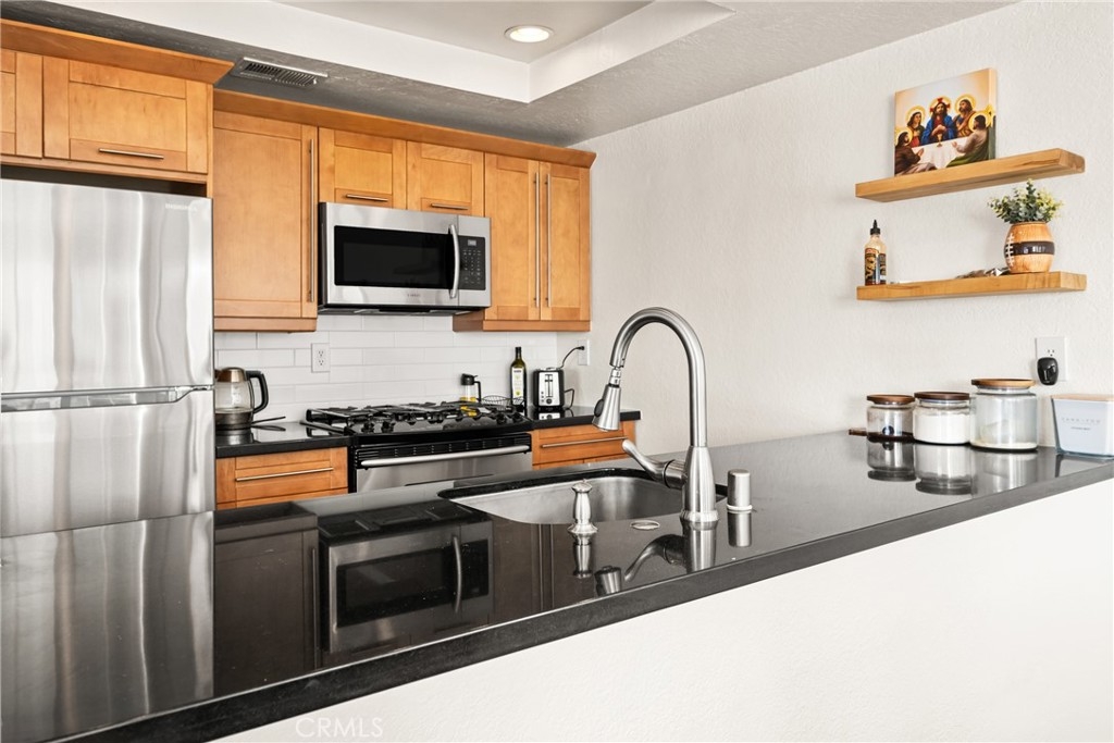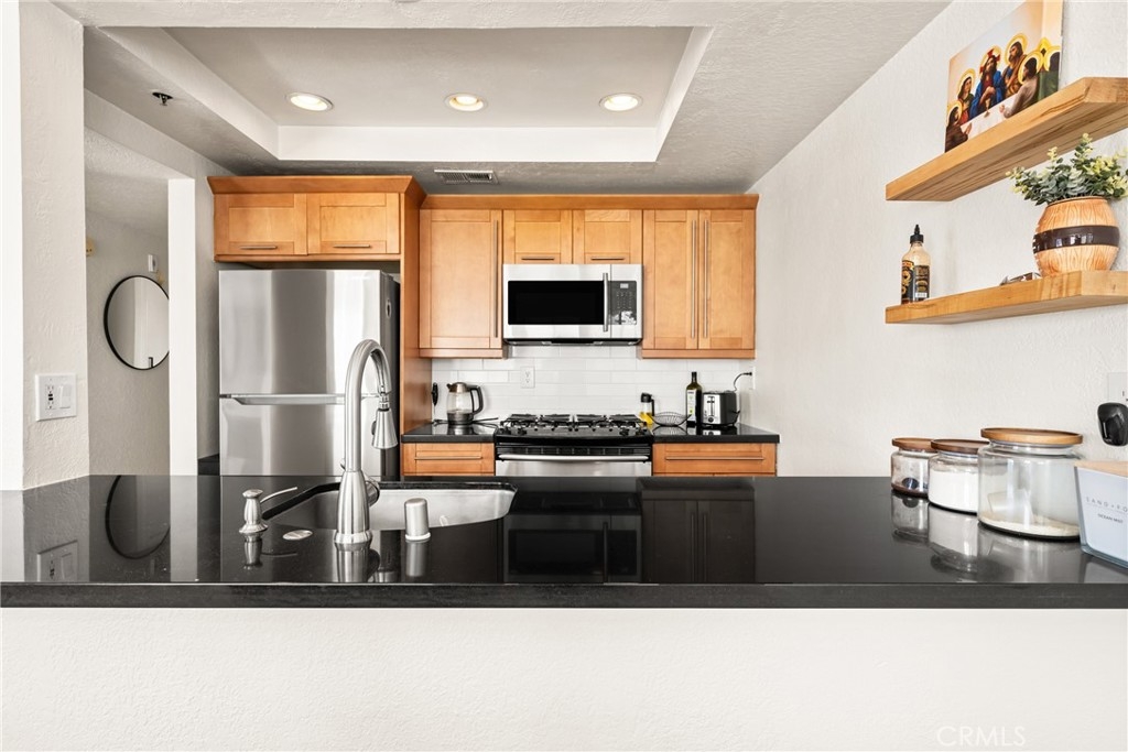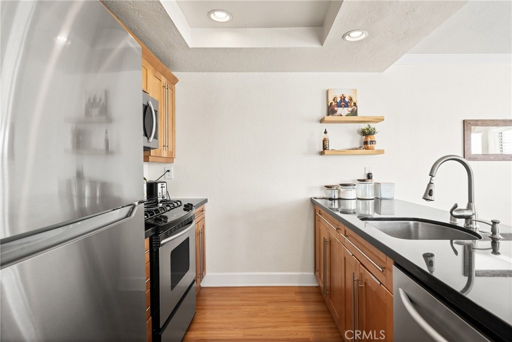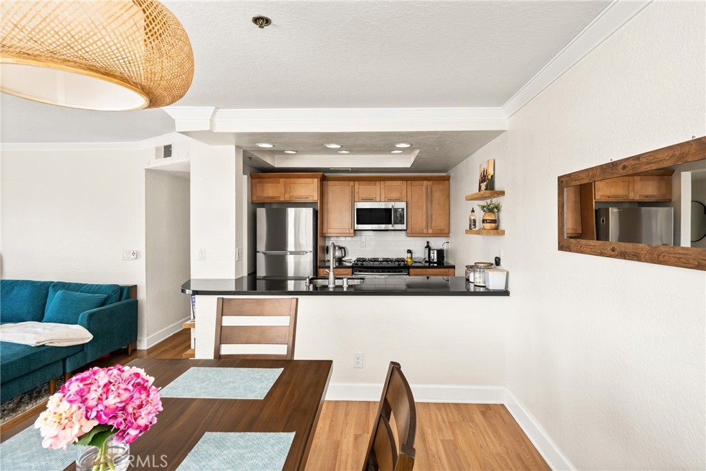 Welcome to the Mystic Cove community in the up and coming Zaferia neighborhood of Long Beach. This complex is FHA approved! This 2 bedroom 2 bathroom unit is well maintained, bright and spacious. The kitchen has been recently updated with stone countertops and a new backsplash, has stainless steel appliances and a large island for extra seating. Both the kitchen and dining knook are open to the primary living space with views of the fireplace and access to the outdoor private balcony. Both bedrooms are generous in both size and natural light, while each bathroom has been updated with new vanities and flooring. The unit is equipped with central AC, inside laundry, crown molding, new ceiling fans, dedicated bike parking and a private parking space in the gated subterranean garage. Amenities of the Mystic Cove community include a swimming pool, spa, fitness center and community room. The complex is walking distance to many restaurants and convenient shopping, close to schools and has proximity to both freeway access and the beach. This building is FHA Approved!!