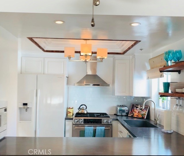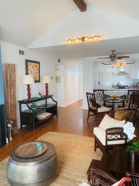 Charming Mystic Cove, spacious, premium corner, 2 bedroom, 2 full bath, 2 patio home in a secured building. Everything is turnkey, clean and ready for you to move right in! This is one of the few condo floor plans that features these stunning tall, vaulted ceilings. Enjoy many brand new upgrades throughout the home, including a completely remodeled kitchen. The lovely kitchen is open to the living space which is perfect for entertaining, light and bright with its all white cabinets. Gorgeous features throughout include custom paint, hardwood flooring and crown molding. This home has been meticulously maintained and has celling fans, plenty of storage space, INSIDE LAUNDRY and AIR CONDITIONING. The community amenities include: pool, spa, gym and clubhouse for parties. Conveniently located approximately 2.5 miles from CSULB, the 405 Freeway, and a little over 5 minutes from the ocean and Belmont Shore, which has fantastic shopping and restaurants.