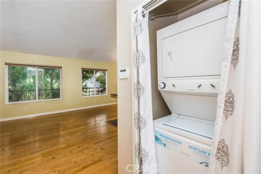 Highly desirable 2 bedroom, 2 full bathroom condo in Eastside Long Beach. Remodeled kitchen featuring maple cabinets, granite counters, stainless steel appliances, and an island for even more counter, cabinet, and entertaining space. Open floorplan with vaulted ceilings and beautiful view of the trees from your living room and kitchen. Hardwood floors in the living room and hallway. Wood-like porcelain tile in the entry way, kitchen, both bedrooms and bathrooms. Spacious master suite with huge walk-in closet. Upgraded bathrooms including newer vanities with granite counter tops. Additional beautiful maple linen cabinet in the hallway with granite countertop. Private balcony is accessible from both bedrooms. Stackable washer/dryer and stainless-steel refrigerator are included! Dual pane vinyl windows and attic space for additional storage. Unit comes with 2 assigned parking spaces in a secure parking garage. Great location close to Recreation Park, Colorado Lagoon, CSULB, and blocks to the beach.