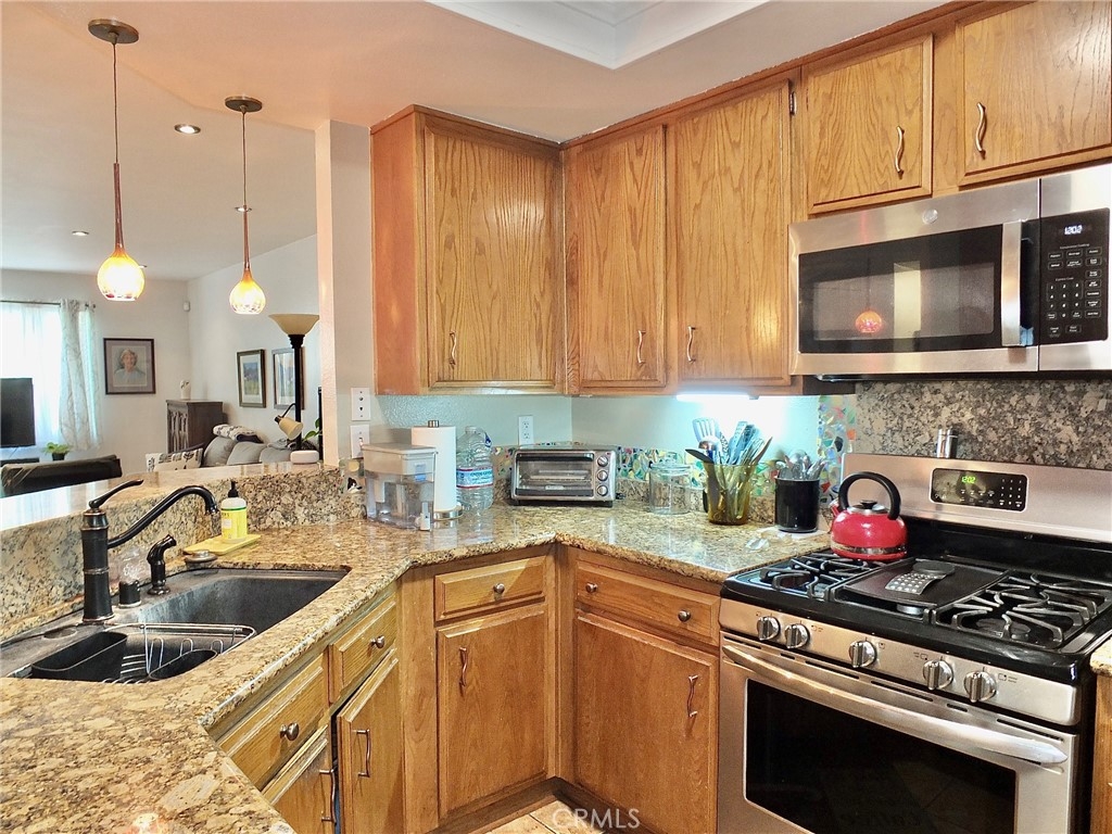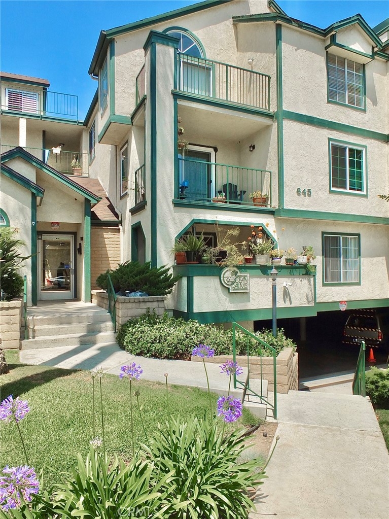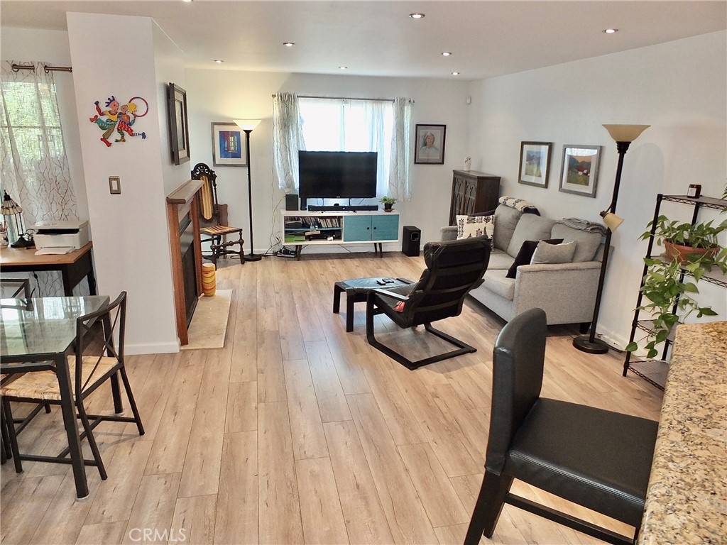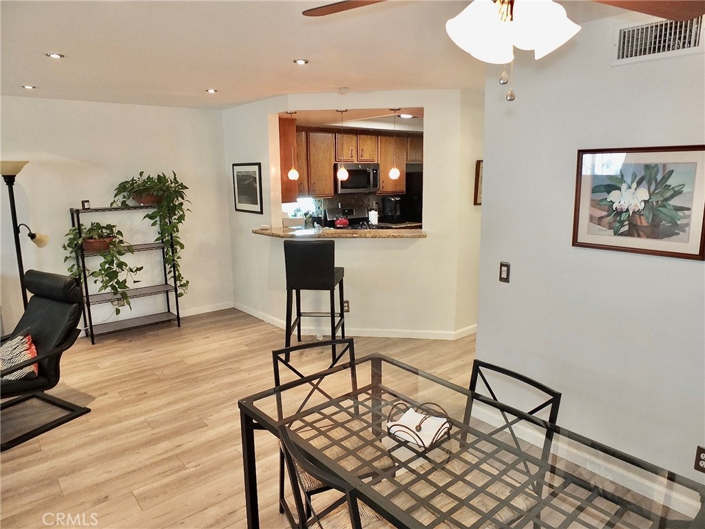 This ground floor unit is located in the Ocean Palms condominium complex. Featuring 2 bedrooms and 2 bathrooms. Wood laminate flooring, recessed lighting, inside stackable laundry hookups, forced air heating, and 2 parking spaces. The kitchen features granite counters, tiled flooring, new light fixture, and a pass-thru to the breakfast bar. There is a separate dining area off the living room. The full hall/guest bath has been remodeled. There is a balcony with access from both the living room area and the primary bedroom. The primary bedroom features mirrored closet and a 3/4 bath with tiled shower. This complex is located not far from the ocean and beach and the area known as the 4th Street Corridor, or Retro Row, a small business district in the city with places for both residents and visitors who enjoy vintage and kitschy shopping, dining and entertainment.