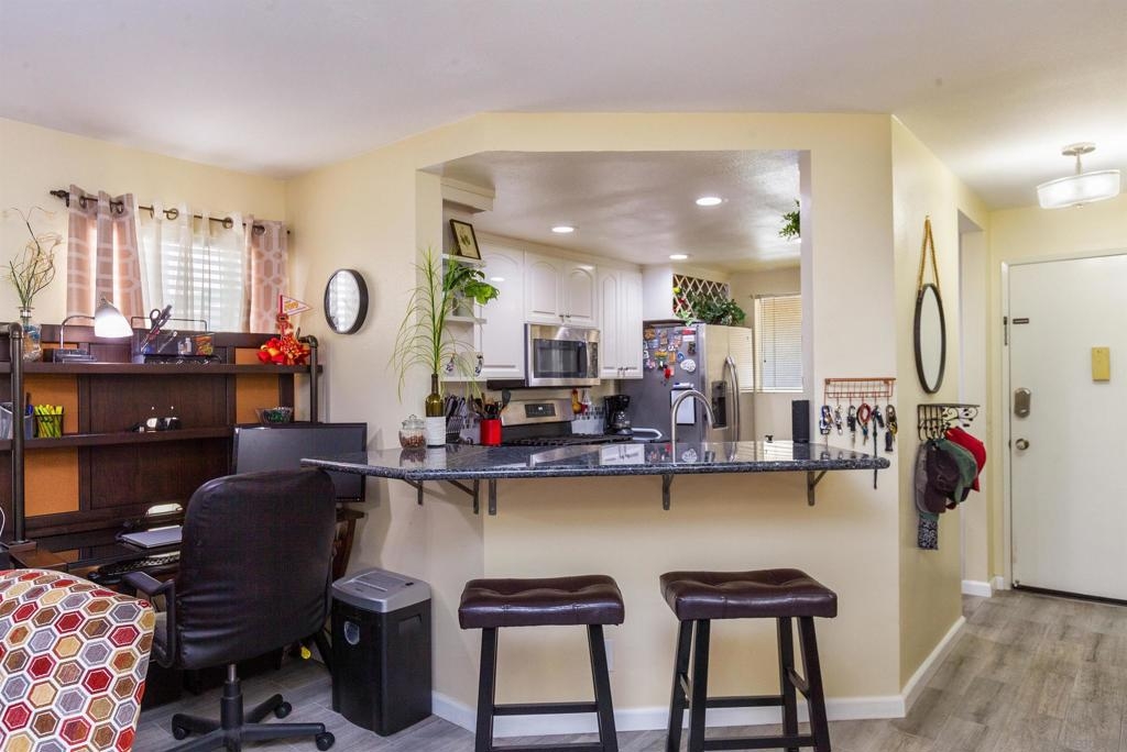 This recently updated 2bed/2bath condominium unit is located in the well-maintained and cared-for Ocean Palms community in the highly desirable Rose Park South neighborhood. As soon as you enter, you will love the layout of this beautifully updated home. The owner has taken meticulous care in updating both bathrooms and has added all new double pane windows and a sliding glass door. The home also boasts new recessed lighting and light fixtures throughout. The kitchen has been upgraded with new cabinets and a breakfast bar has been added. There are 2 deeded parking spaces, in-unit laundry, and a new central AC/heating unit. You will love the large feel of the living room envisioning yourself enjoying the warmth of the fireplace or the serenity of the large dual access balcony as you sit back and sip your morning coffee or evening beverage. You will love the walkability of the surrounding neighborhood including all the great dining and shopping that 4th Street has to offer.