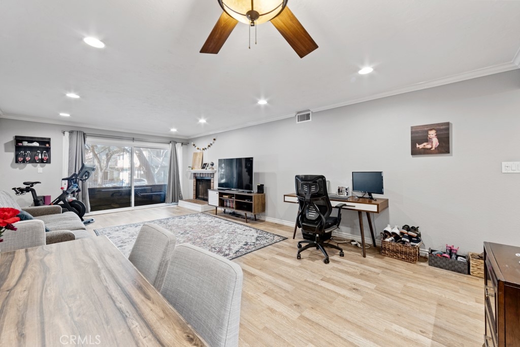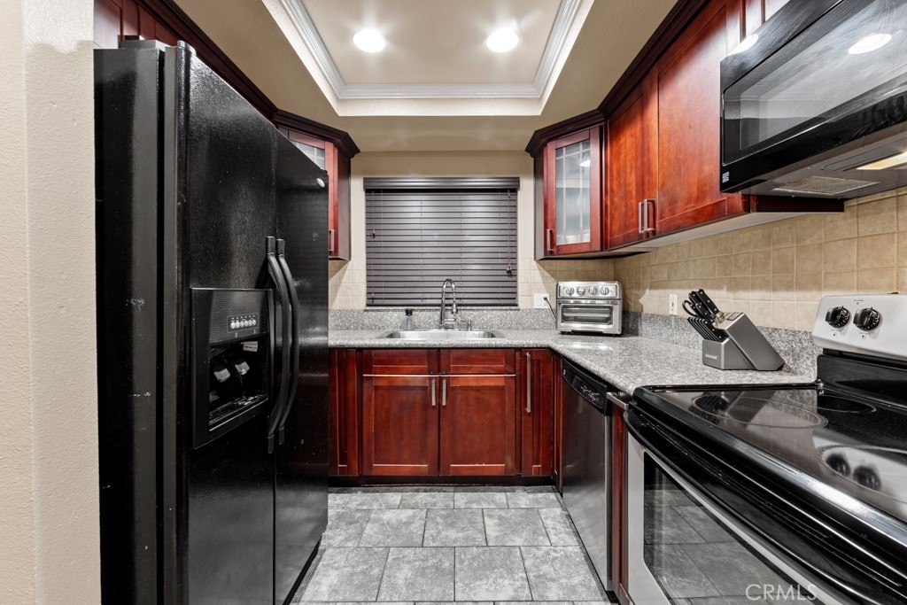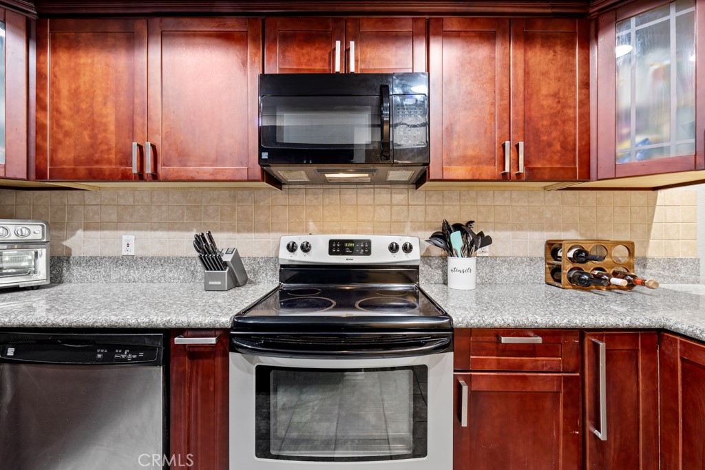 WELCOME HOME to this fabulous condo in the highly desirable Zaferia District with parking and inside laundry! This 2 bedroom, 2 bathroom condo is light, bright and spacious. The living and dining areas flow seamlessly and feature luxury vinyl flooring, recessed lighting, a gorgeous fireplace, and a front-facing patio that is perfect for morning coffee. The kitchen is updated with granite counter tops, custom cherry cabinetry, and a breakfast bar. The primary bedroom is huge with a custom closet that extends nearly a whole wall, and has an attached en suite bathroom featuring a stand up shower with trendy stone and bench seat. The secondary bedroom is spacious as well with a walk-in closet, and both bedrooms have plush high-end carpeting. The guest bath has a shower/tub combo and is centrally located for when you have guests. Say goodbye to community laundry with your own full-size washer and dryer in your unit!!! Located within a gated complex with a dedicated parking space, with central air & heat and a brand new water heater, this condo is ready for you to move in and make it your own!