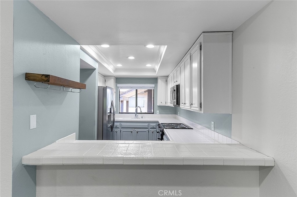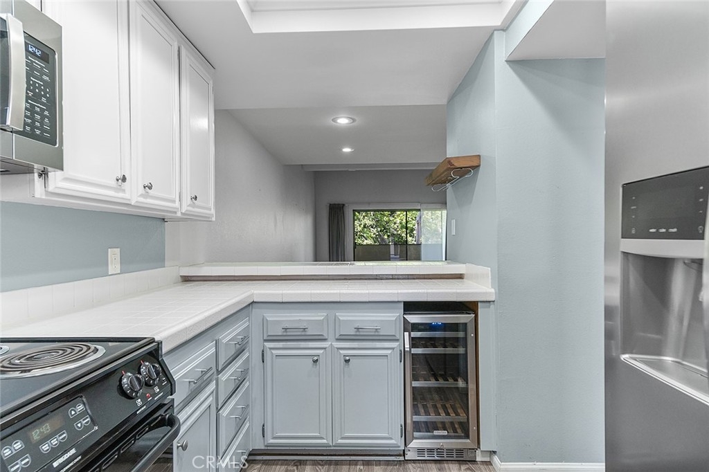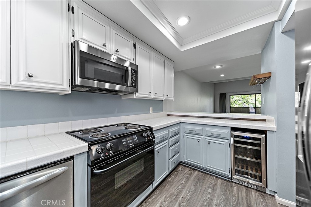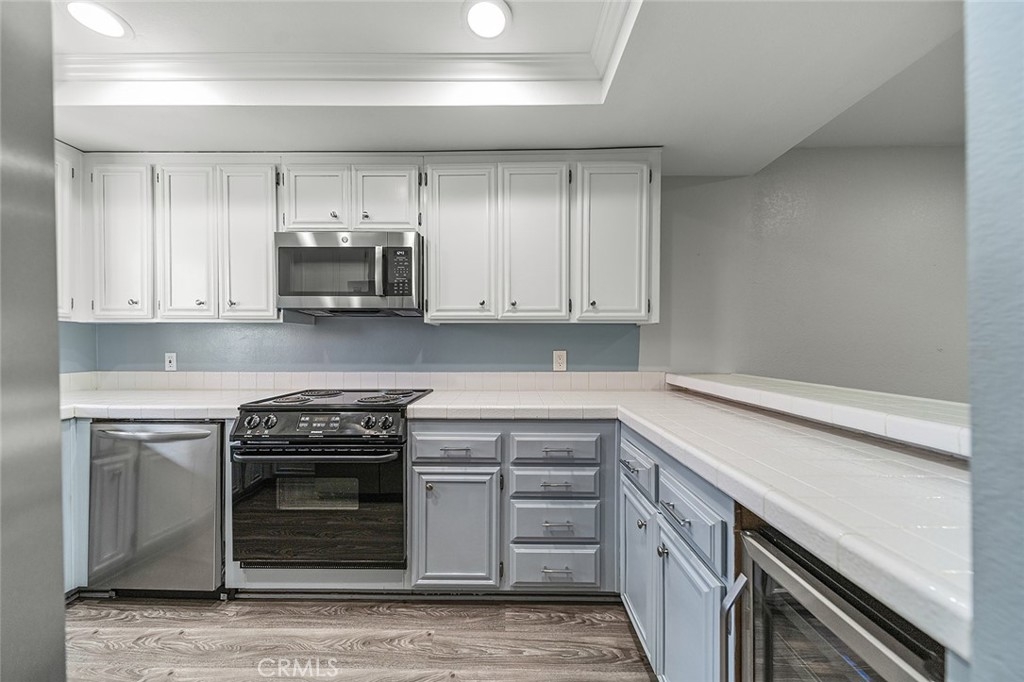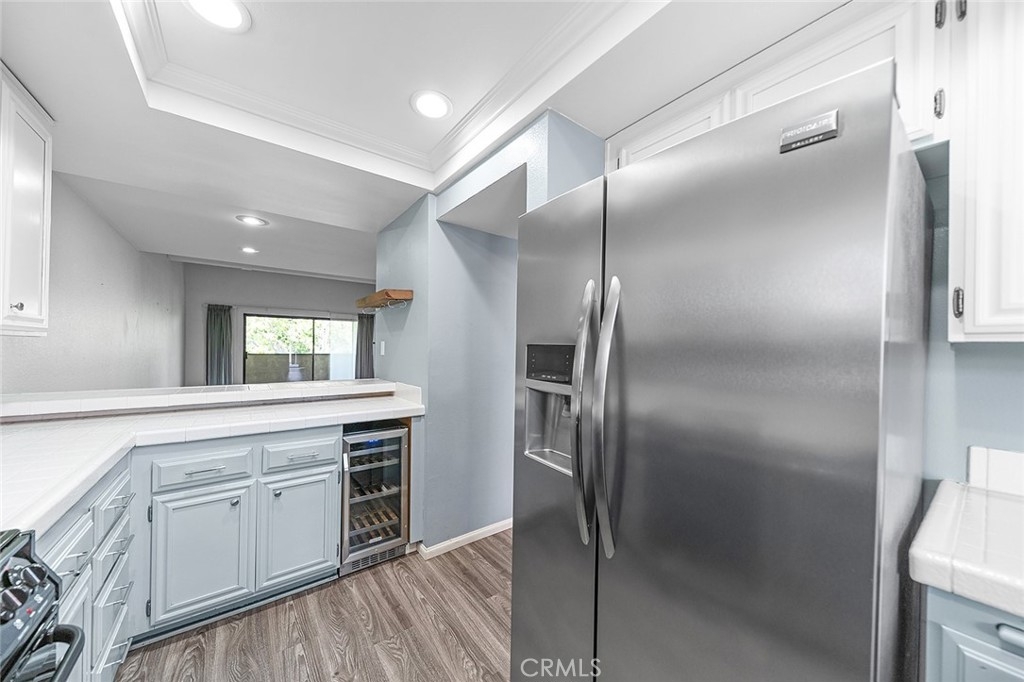 Move-In Ready Condo in Long Beach! Welcome home to your beautifully updated top-floor condo in Long Beach. This two-bedroom, two-bathroom condo has only one shared wall and is a spacious 1126 square feet. The unit has been lovingly upgraded with new luxury vinyl plank flooring throughout. You’ll love the bright and airy living room with vaulted ceilings and large, open feel. Enjoy cozy nights by the beautiful fireplace. The kitchen has updated appliances, including a wine fridge, and a tray ceiling with recessed LED lights. The bar facing the dining room was opened up to give more height. The primary bedroom is spacious with an en-suite bathroom and walk-in closet. The second bedroom is a nice size as well, with its own walk-in closet. The shared hallway bathroom is updated with a marble vanity top and new lighting. The unit also features central heat and air conditioning, an inside laundry with washer and gas dryer included, and a lovely private balcony to enjoy the treetop view. The complex has updated landscaping with drought-tolerant plants, and a beautiful mandarin tree in the courtyard. There are two assigned parking spaces in the subterranean garage, and there is additional communal storage for owners on each floor of the building. Just 5 minutes from the beach, this unit is convenient to restaurants, shopping and everything Long Beach has to offer..