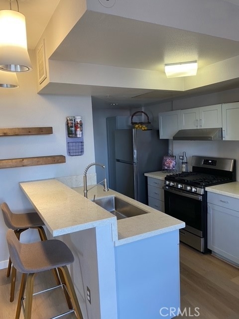 Olive Court Condo: This spacious open floor plan has 2 bedrooms and 1 1/2 baths w/ views of city scape & beautiful sunsets... Move-In-Ready! New vinyl and carpet flooring, updated kitchen featuring stainless steel appliances / new dishwasher & quartz countertops w/ extended Breakfast Bar. It's a light, bright and airy unit~ Garden patio on 2nd floor, all bedrooms located on 3rd level. Inside laundry @ entry w/stackable washer & dryer... Close to shopping, restaurants and metro lines. Enjoy the security of 2 parking garages with storage. It's a GEM!