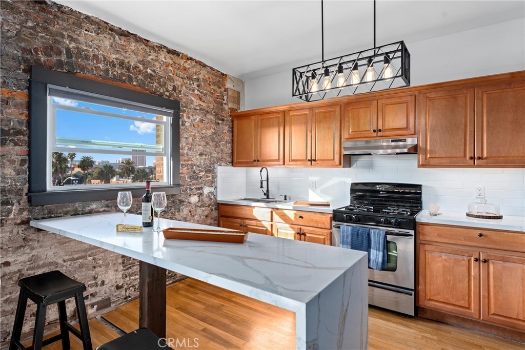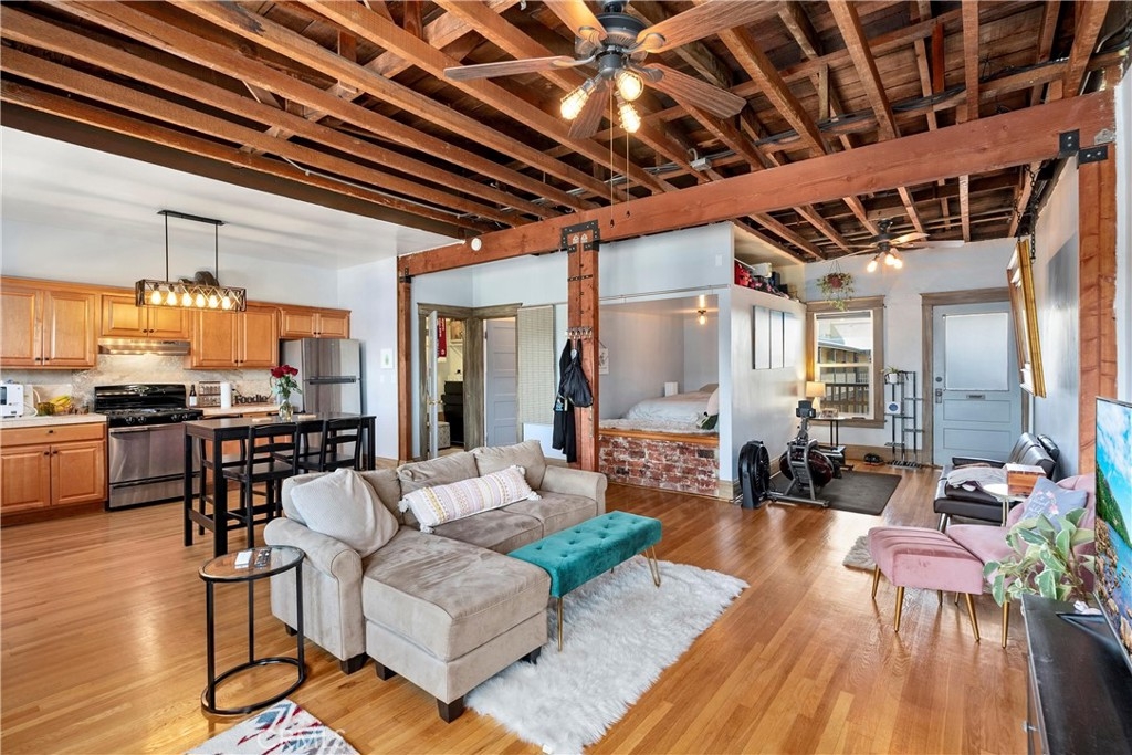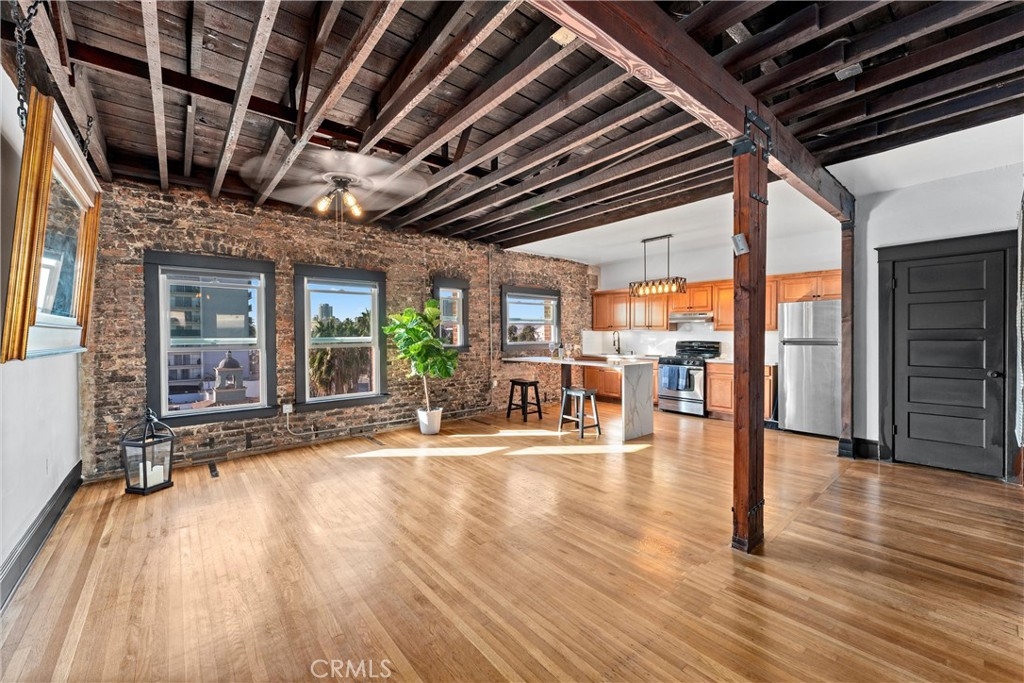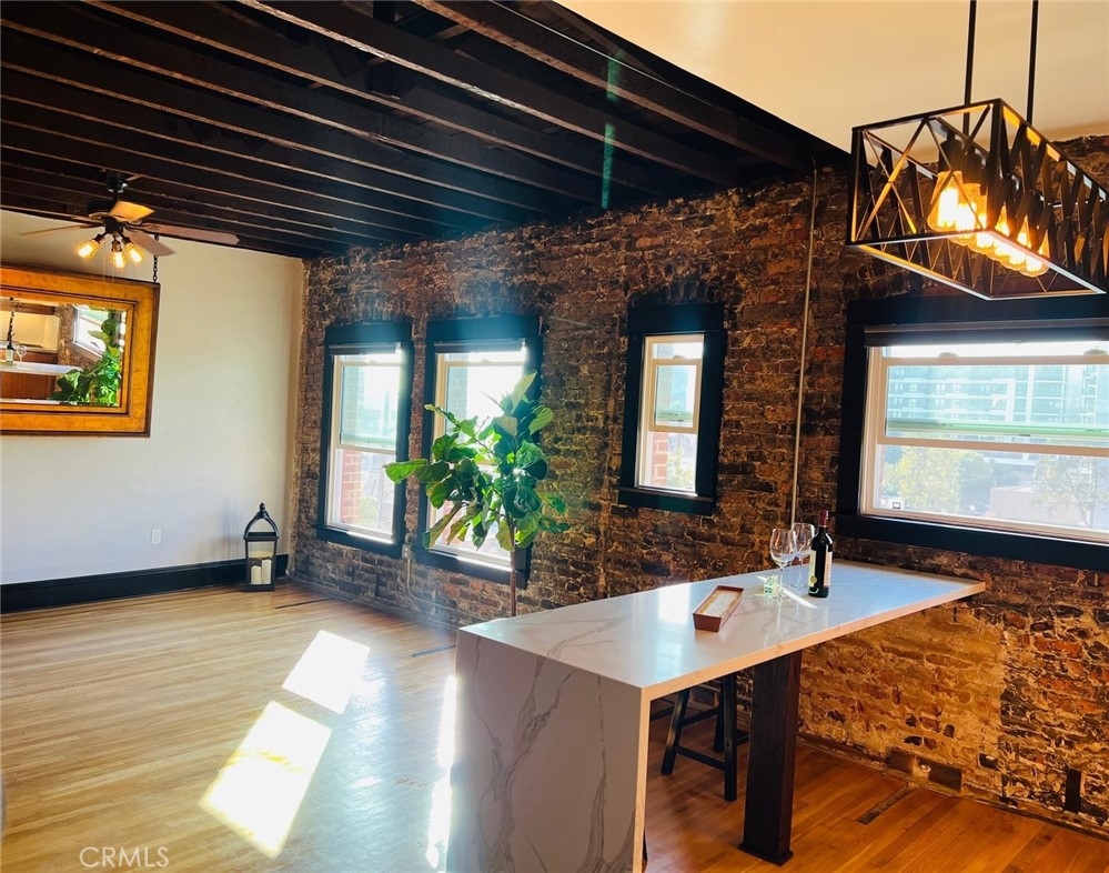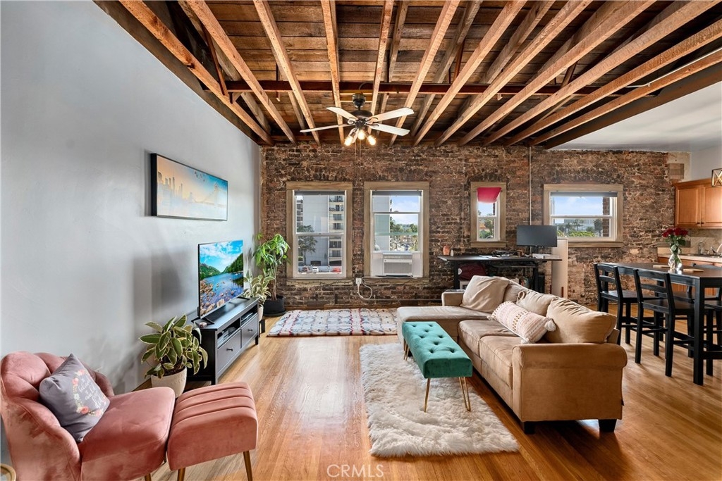 ..Property qualifies for 30k Grant ! Property can be Eligible for first time buyer programs . LENDER CAN EXPLAIN! Opportunity to live in the Historic 800 Pacific Building which just celebrated 100 years in 2021. Welcome to 800 Pacific Avenue, Unit 411, a smart and modern 1-bedroom, 1-bathroom residence in the heart of Long Beach, CAVintage Modern and cool is how I would describe this super clean and open concept. The upper floor location offers great westerly views and provides a sense of privacy. This remodeled 663 square foot home boasts a sleek design and an abundance of natural light with large South facing windows make the large living area open to the updated kitchen warm inviting and a great place for entertaining. The natural exposed brick in the living area add character to the space and give you the cool vibe you are looking for. The Stainless steel gas stove, exhaust fan provide all you need to make your delicious meals. The updated kitchen cabinets and quartz countertop have plenty of room for your kitchen gadgets. The low maintenance original hard wood flooring throughout give you that vintage feel. A large walk in closet is the perfect place for all belongings, but if you need more storage there is a separate storage closet located in the basement! for your extra stuff. New ceiling fans have been installed in living area for those warm summer nights. A new bathroom upgrade was recently completed maintaining the vintage look and feel. (brand new) . An electric wall heating unit is all you need to take off the chill when needed. The building provides an elevator for convenience. The well-maintained building offers an incredible courtyard and meeting space, as well as laundry facilities on-site. Residents can also take advantage of controlled access for security and private and common storage down stairs by basement. Conveniently located within walking distance to a variety of restaurants and bars, this low rise residence is perfect for those seeking a vibrant urban lifestyle. Don't miss the opportunity to make this modern gem your own!P Pacific Building which just celebrated 100 years in 2021.