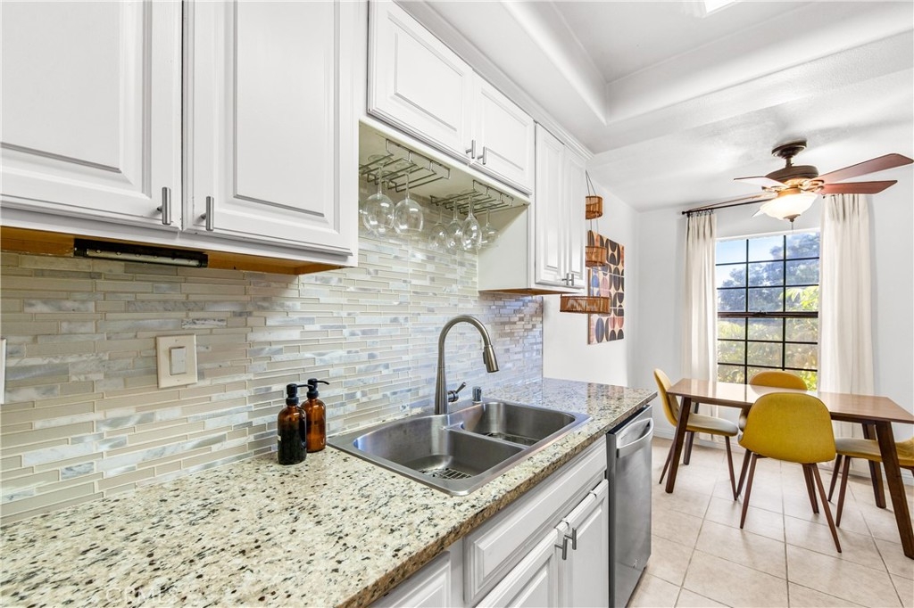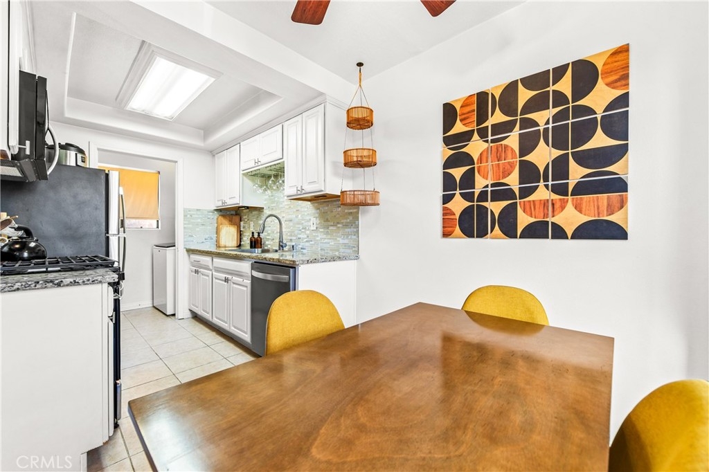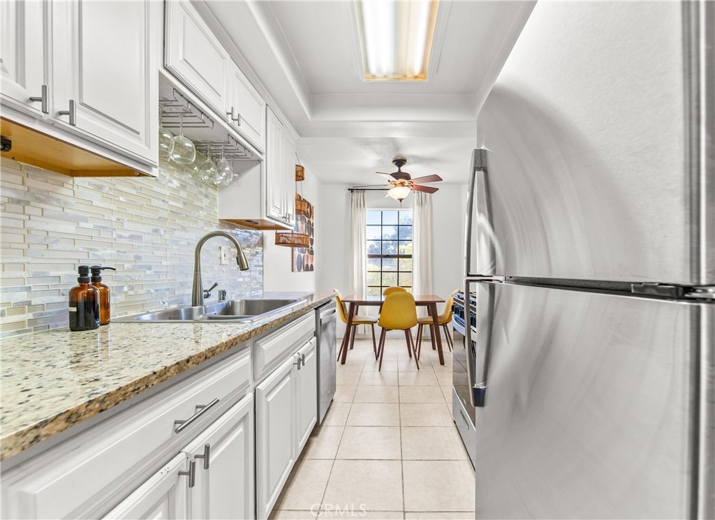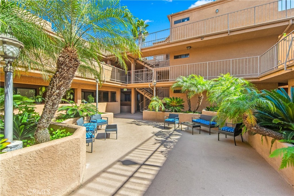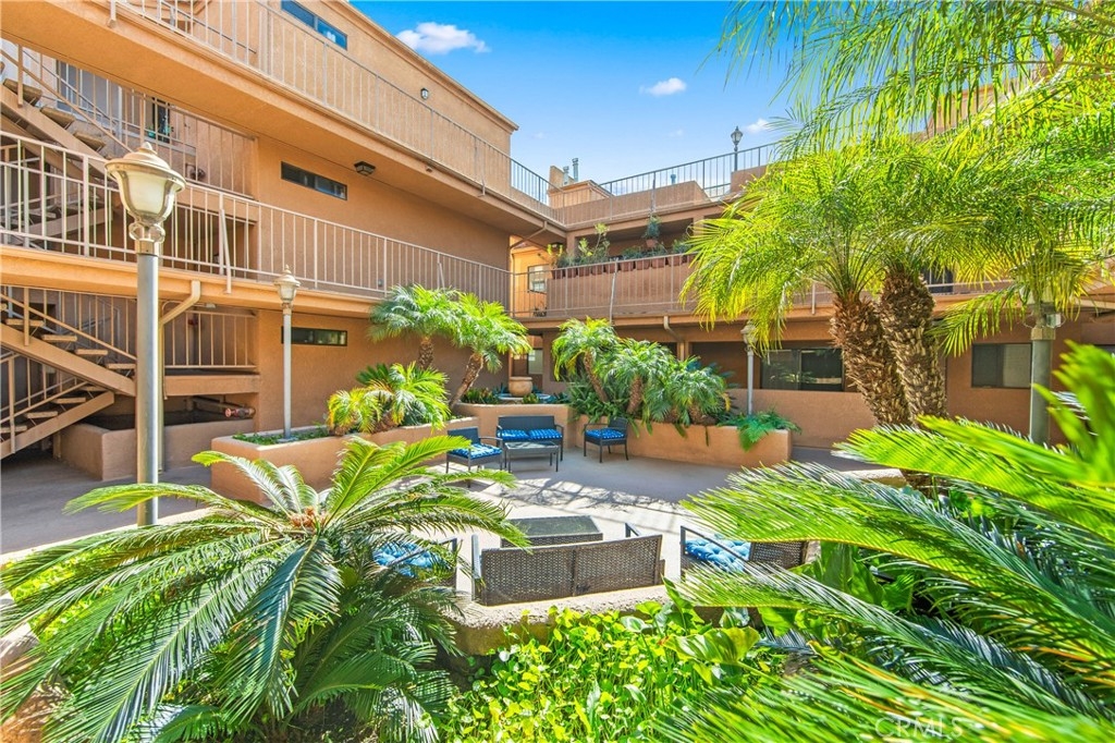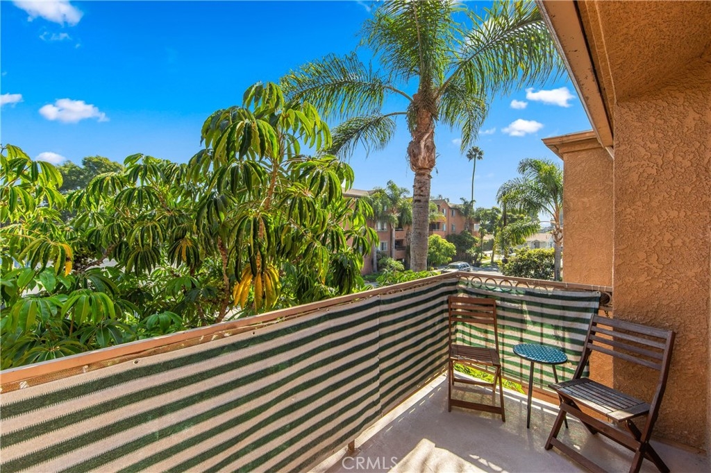 Welcome to this Mediterranean-style condominium located on a quiet cul-de-sac in the heart of Long Beach, less than two miles from the ocean. Unit #203 sits on the second floor of a friendly 24-unit community surrounded by manicured landscaping. Inside, step through the travertine foyer into a bright, open floor plan with vaulted ceilings. This 3-bedroom, 2-bath corner unit features custom laminate flooring, a sunny dining area, and a spacious living room that leads to a newly renovated balcony framed by palm tree views. The remodeled kitchen offers granite countertops, white cabinetry, and brand-new black and stainless-steel appliances are included. A tucked-away laundry room with washer and dryer and a nearby linen closet add convenience. The primary suite includes a walk-in closet and ensuite bath, while the two additional bedrooms feature mirrored wardrobes. The layout feels open and well-proportioned across roughly 1,000 square feet. Additional highlights include two tandem parking spaces in a secure, gated garage with 24-hour surveillance. With Long Beach’s continued coastal growth, this move-in-ready home is an excellent opportunity in today’s low-inventory market.