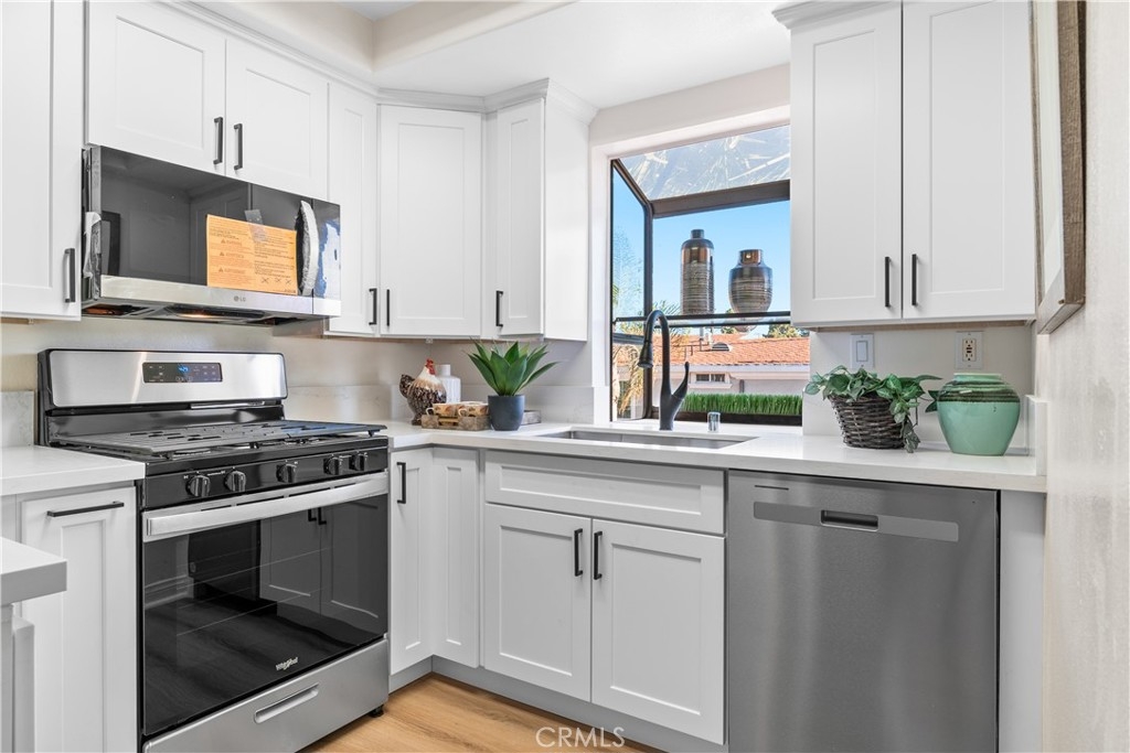 This Two-story loft style condominium located at a quiet and beautiful community.Two bedrooms and two full bathroom,high ceiling provide an open and spacious atmosphere.Both main level and upstairs has balcony. Remodeled on August 2024,with the new kitchen,new cabinets,flooring,whole house painting,quartz countertops,gas stove,dishwasher,microwave,oven and bathroom. The Palm Oasis community with courtyard seating,outdoor BBQ It’s near 405 and 710 freeways,PCH,public parks,shopping and restaurants.