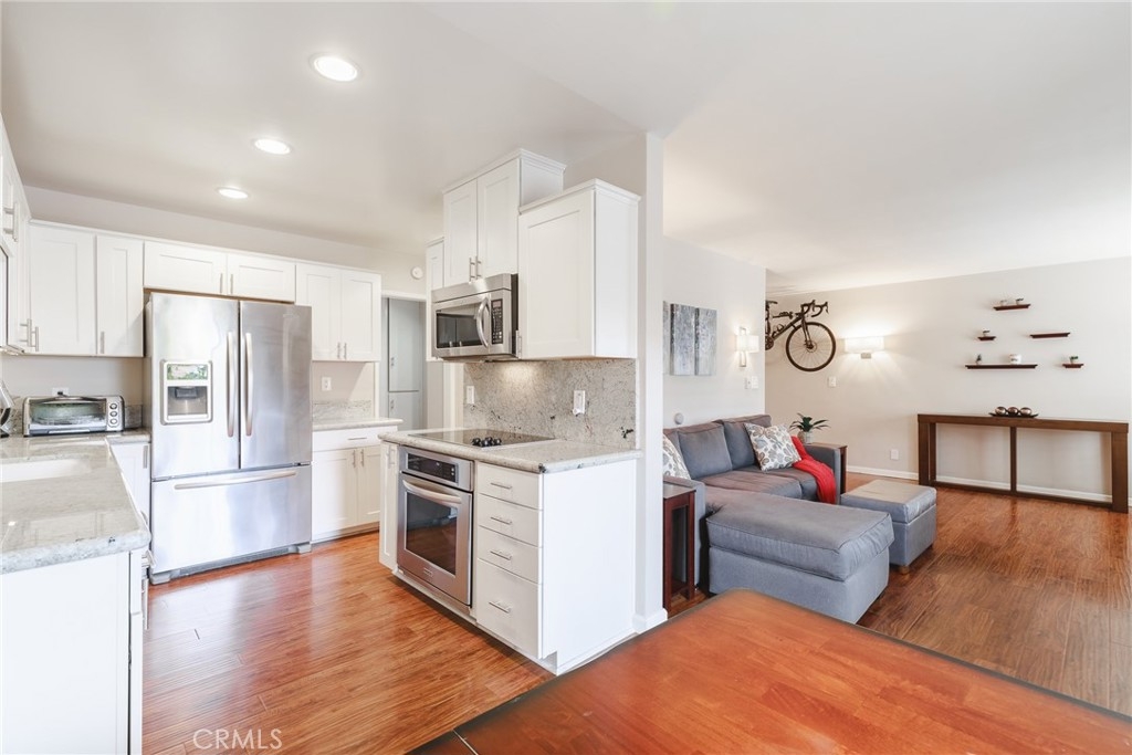 Welcome home to 333 Junipero Avenue! Park Bermuda, a beautiful example of mid-century architecture is nestled between the ocean bluffs and Retro Row! This garden-style condo building is in the heart of one of the most desirable areas of Long Beach. The bright and open floorplan with gorgeous laminate floors throughout create an expansive living and dining room with attached balcony. In the beautifully upgraded kitchen you will find granite countertops, recessed lighting, custom wood cabinetry, dishwasher, garbage disposal, built-in microwave, wall oven and refrigerator. The primary bedroom provides ample storage with built-in closets lining the wall and cabinets in the adjoining bathroom. En-suite bathroom with gorgeously remodeled walk-in shower with frosted glass doors provides a luxurious spa-like atmosphere. The large walk-in closet in the guest bedroom provides even more convenient storage. This unit comes with it's own 1-car garage! Situated blocks from the beach, shopping, dining, biking and walking paths and the bluff, Park Bermuda is an incredibly well-kept and highly sought after complex!