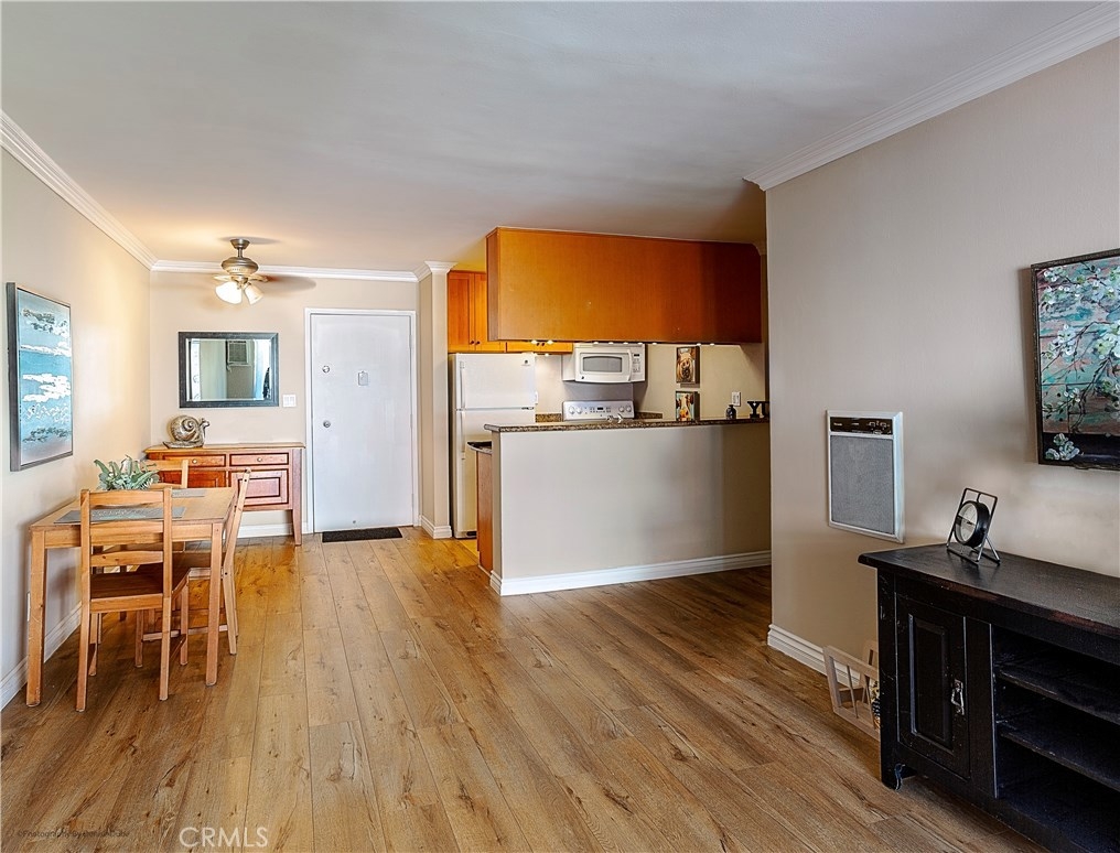 Welcome to Park Ocean! The beautiful Top floor unit faces the interior courtyard, and overlooks the fountain and pool area. This unit has been remodeled with New Flooring, Granite Counter tops in the kitchen, under cabinet lights, Granite vanity in bathroom. The shower has beautiful Stone, a must see! Air Conditioning in living room . All Furniture is included! One Covered parking space. Park Ocean Amenities include, Gym, Bike Storage, Tennis Court, Laundry Facilities on each floor, Pool and Spa. This is a must see!
