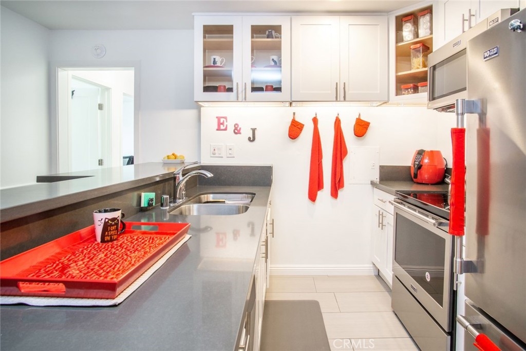 Bright and modern, this unit is ready to move into! Recent upgrades include flooring, kitchen, appliances, bathroom, fresh paint, new heater and custom designer finishes. Your south facing balcony has a view of Catalina! This home is unique because of it's no full common walls and no one above you! Along with the private location, there are double paned windows. This is a secure building with interior grounds that include tennis court, pool and spa, fitness centers, sauna, barbeque areas, laundry room and park like grounds. Gated top level parking spot included. HOA pays water, trash. Fantastic location near CalState Long Beach, the Veterans Administration and Belmont Shore! Walkable to shopping and dining. You don't want to miss this great opportunity to own the premier unit at Park Ocean!