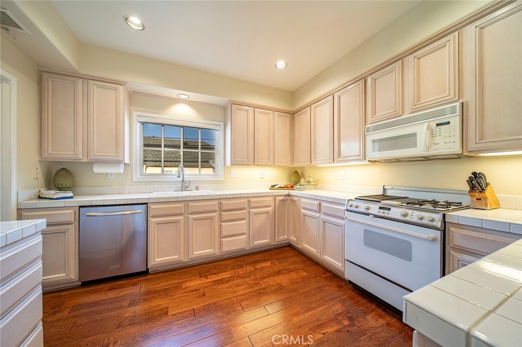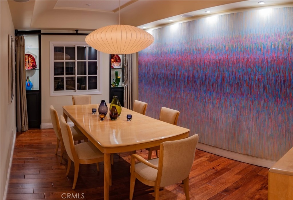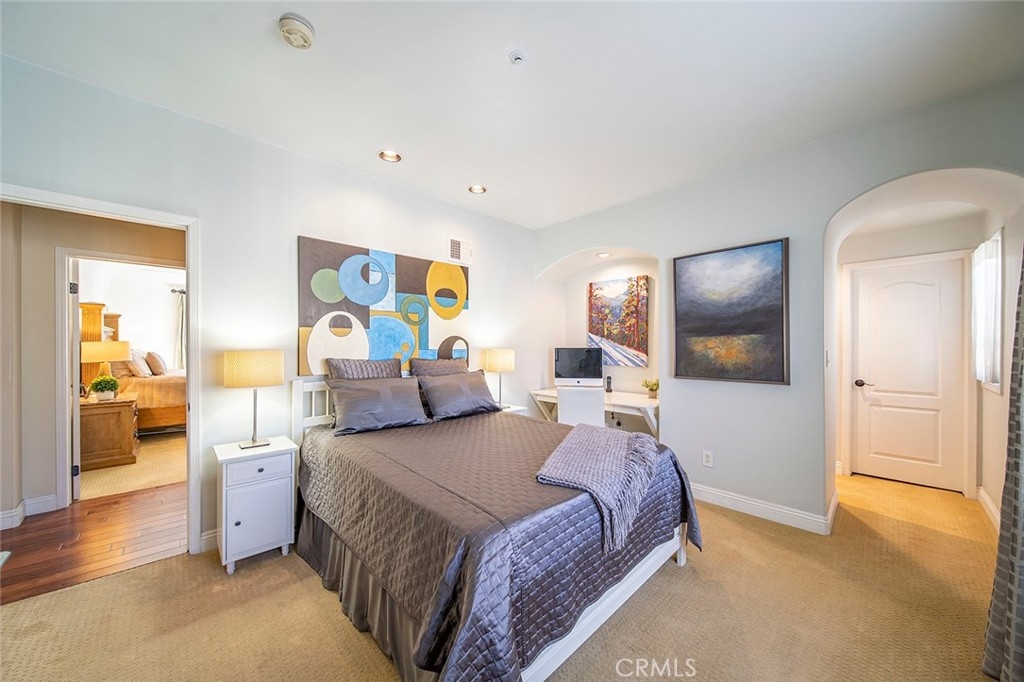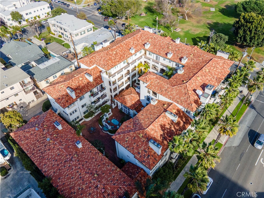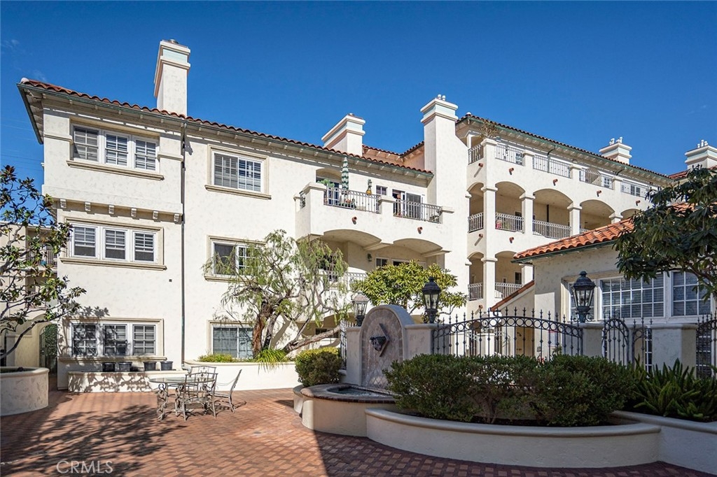 Enjoy the Mediterranean lifestyle at the park Regency Villas. This large 2 bedroom + office, 2.5 bath corner unit lives more like a home than a condo, boasting a contemporary vibe while radiating warmth and charm. You will appreciate the private location with no adjoining walls. Enter through a beautiful leaded glass door into the inviting living area showcasing a marble hearthed modern fireplace, custom built-in bar & Cherrywood flooring. The living room boasts a 20' balcony overlooking the courtyard with its lush landscaping. The kitchen has tons of cabinetry, counter space & buffet bar. A convenient laundry room is off the kitchen.The kitchen opens to both the living & dining rooms with built-in custom cabinetry, shelving & recessed lighting.A powder room is located off the living space.The primary suite embraces a double-sided fireplace leading to a light-filled office/workout room or extra bedroom, a spa bath & walk-in closet. The bath enjoys a soaking tub, separate shower & dual sinks A 2nd en-suite includes a full bath, alcove desk & 2 closets.This impeccably maintained complex includes incredible amenities: secure side by side garage parking, storage area, 8 guest parking, community garden, recreation/entertaining room with kitchen & dual courtyards with spa, & is pet friendly.A fabulous opportunity to create your sanctuary at home in a highly desirable location across the street from the ocean, bike path & easy access to the 2nd St & downtown restaurants & shopping.