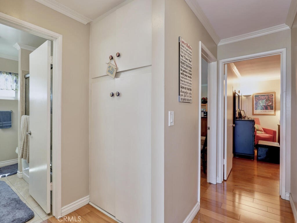 Welcome Home! Picture perfect 2 Bedroom, 2 Bath Top Floor, Corner Unit with subterranean parking and storage. Located in the Park Royale condo building - just a few blocks from the beach! Enjoy cool ocean breezes, beach activities, bike path along the ocean, walk to nearby restaurants, Long Beach Art Museum, local farmer's market and more. Undoubtedly one of the best locations within this building - only one common wall, close proximity to elevator, large balcony. This spacious home features a kitchen with stainless appliances, new "smart" microwave, tile counters with custom backsplash. Large, open living room with dining area. Primary bedroom with walk-in closet, private three quarter bath and skylight. Hardwood floors through out, New water heater, Triple pane windows.