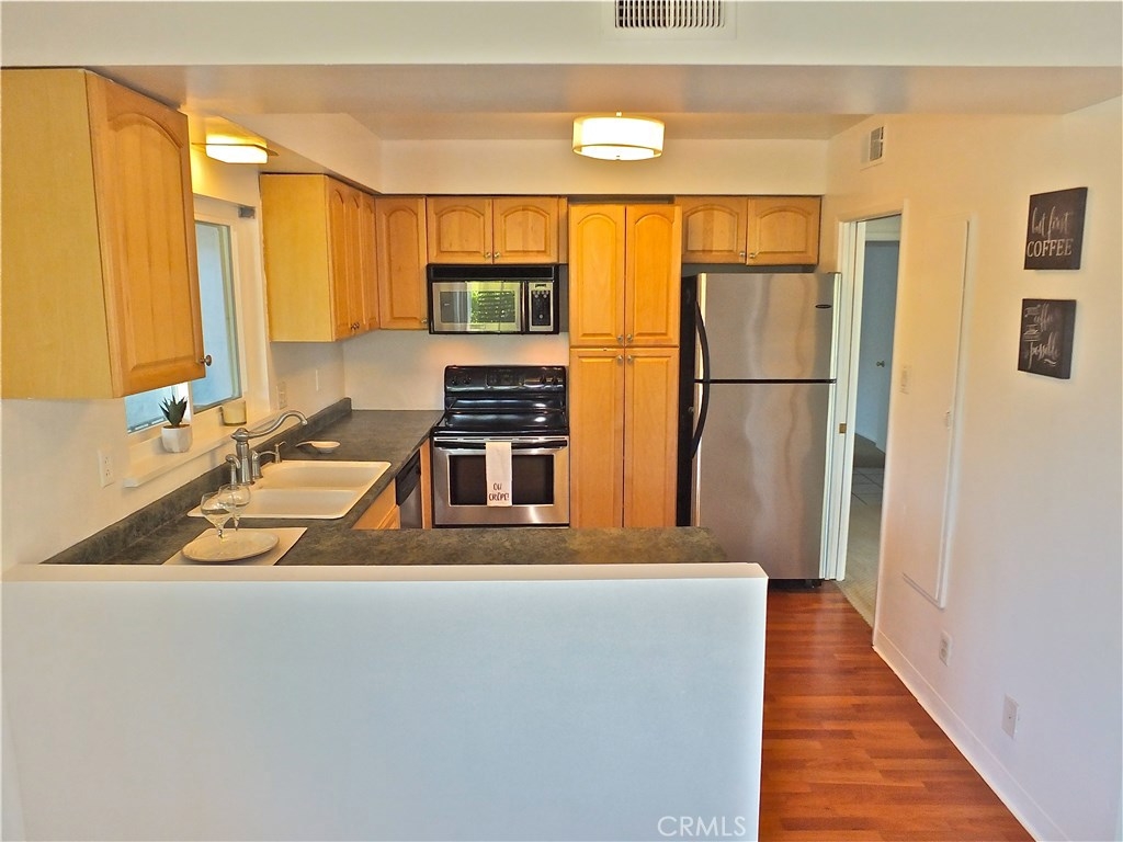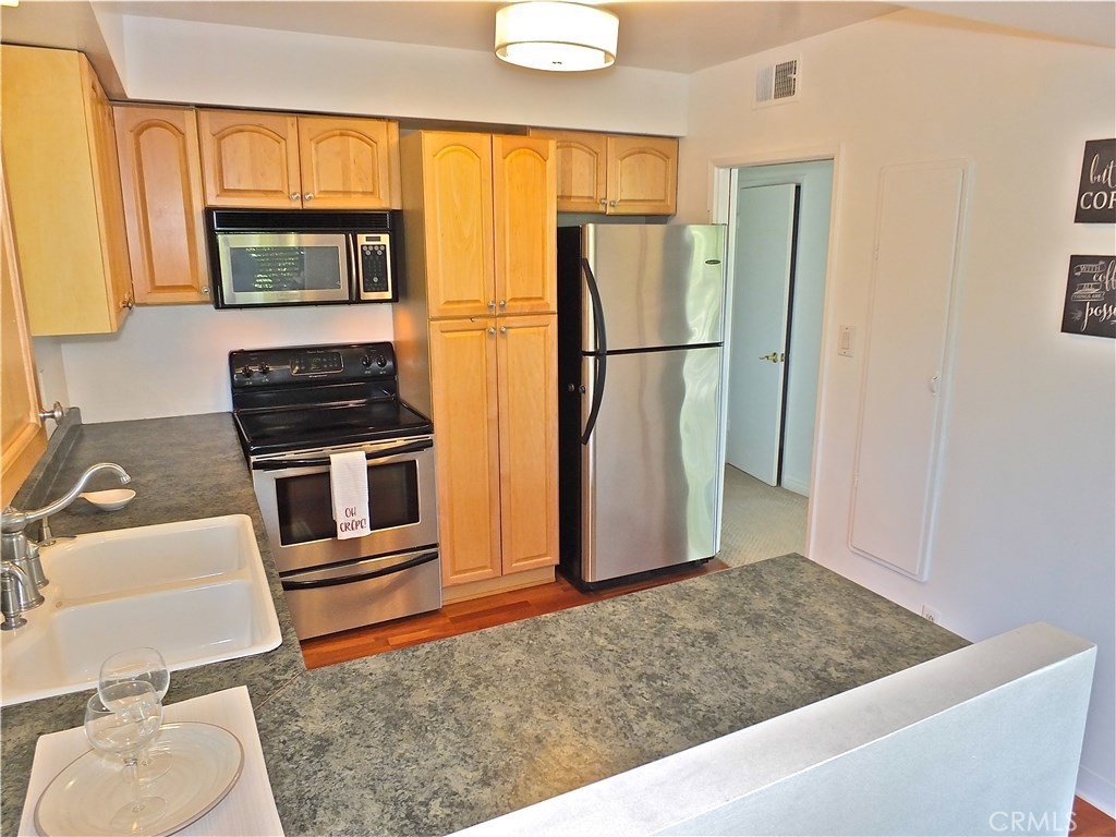 Upgraded light and bright end corner unit with only one common wall and located in prestigious Park Estates among million dollar homes. Great opportunity to own near the beach in one of the best neighborhoods in Long Beach. This spacious 2 bedroom, 2 bath unit features: an upgraded kitchen with custom wood cabinets, double sink, and stainless steel appliances (refrigerator, microwave, dishwasher, oven/range), all opening to a convenient dining room. The unit has a large living room with sliders out to a huge private balcony with views to the golf course. Both bathrooms have been updated with newer counters, vanities, sinks and tile floors. Unit has lots of built ins and storage including a large bonus attic space. Other upgrades include: newer plumbing, newer AC, dual pane windows. Direct garage access that includes parking space, roll up garage door and additional storage. This smaller, quiet complex has on site laundry and is a very strong HOA with low HOA dues and it is a part of the Park Estates Neighborhood Association. Don't miss out on this incredible opportunity to own a spacious unit in a premier neighborhood.
