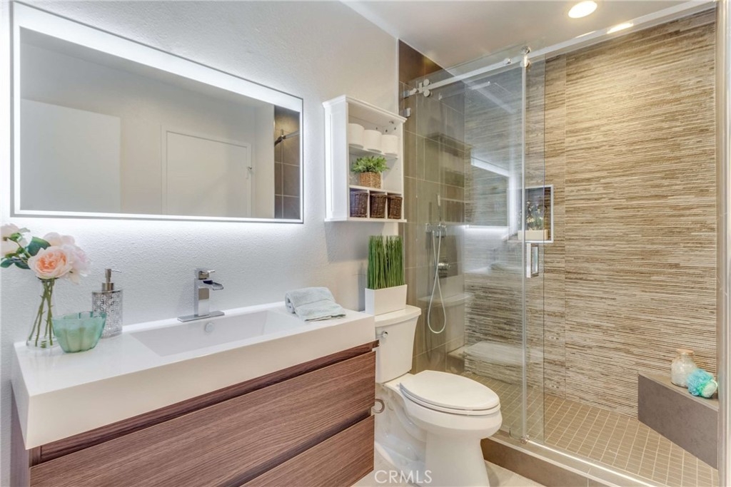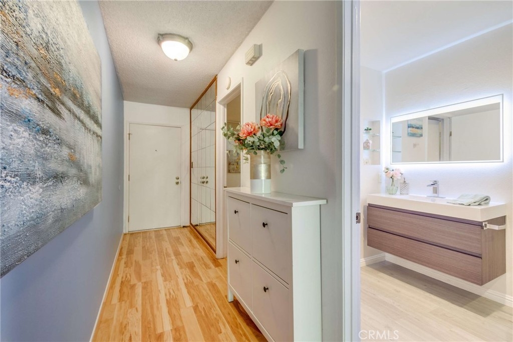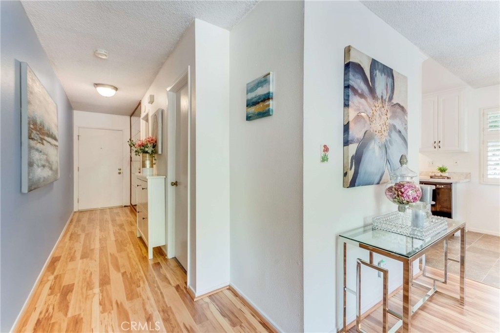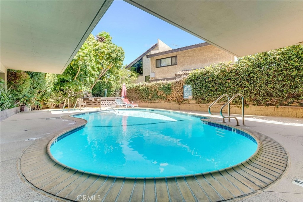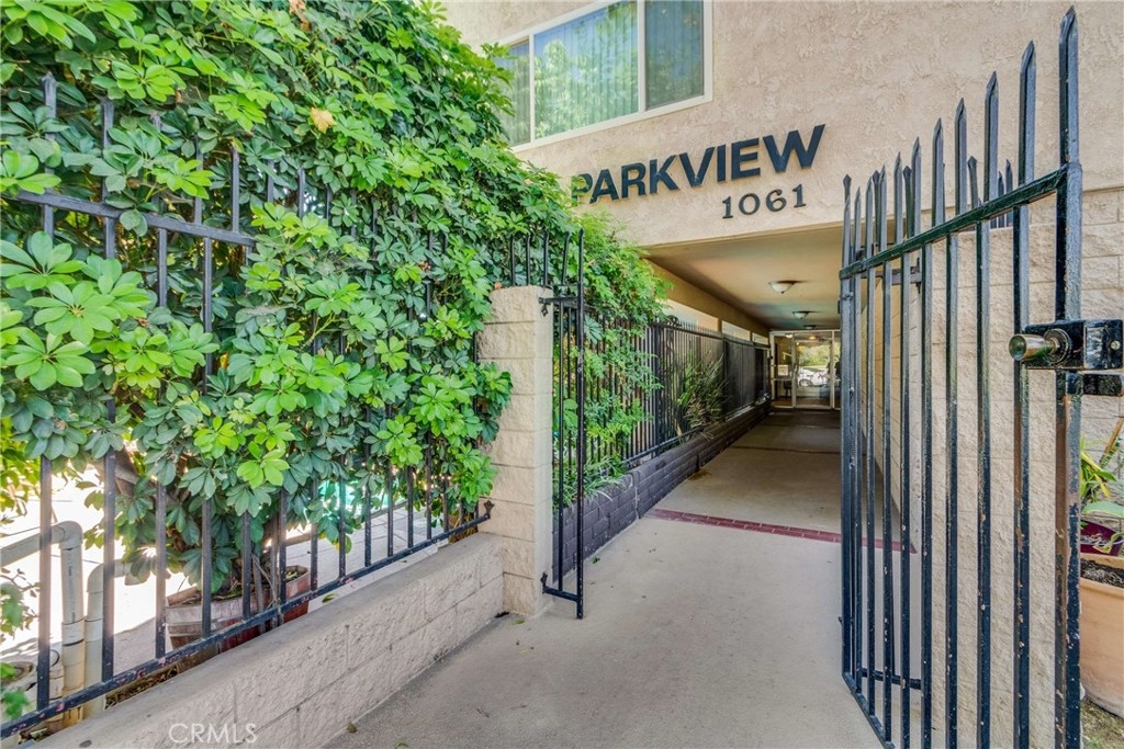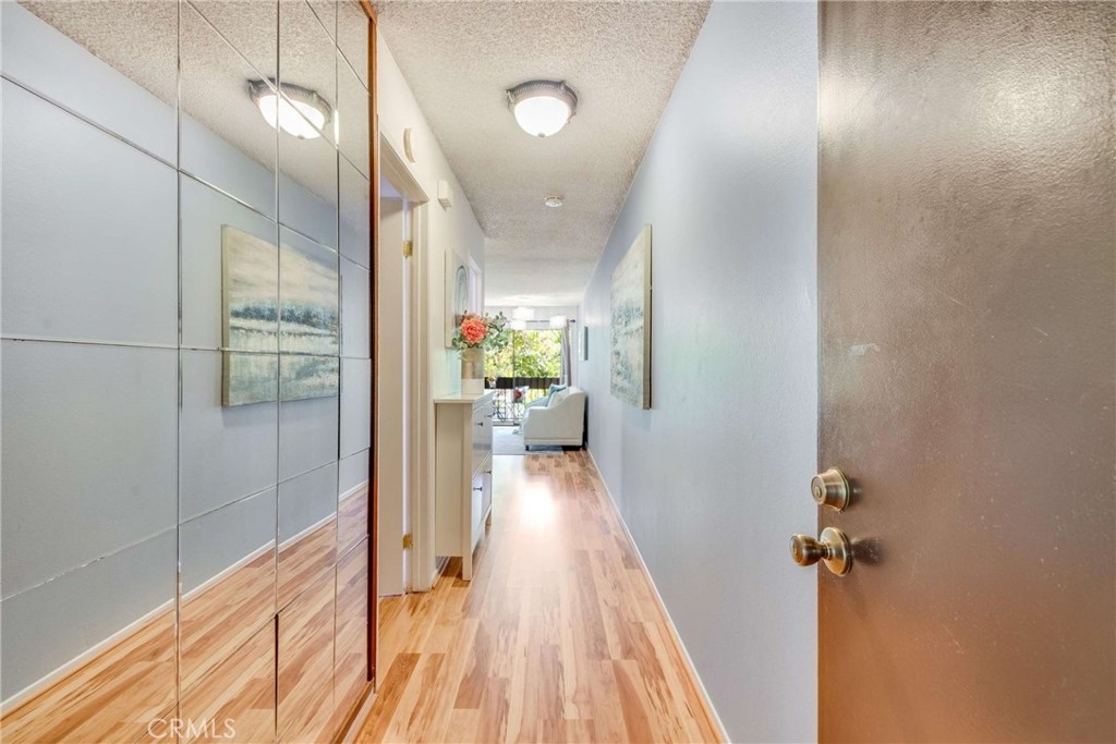 Welcome to Parkview Terrace, located in the Eastside Circle area of Long Beach, where this corner-end unit offers added privacy. The entry hallway leads you to an open-concept living room and dining area, where a large sliding glass door opens onto a balcony overlooking a tree-lined street with dappling sunlight that offers a relaxing area to enjoy the coastal coolness and outdoors. The dining area has plantation shutters and is adjacent to the kitchen, with white cabinets, a pantry, ample countertops, and upgraded appliances, including a glass-topped stove and oven. The bedroom and bath are found just off the entryway through two separate doors, one taking you into a spacious, light, and airy bedroom with wall-to-wall mirrored glass doors, and the second door leads into the bath with a glass-enclosed step-in shower and vanity sink. The bath can be accessed from within the bedroom through a private door and also the second door you’ll find as you travel down the entry hallway, making this convenient for guests. Both the bedroom and dining area have a split AC system to offer year-round comfort. Additional amenities include secured underground parking and a community laundry room. This is a well-maintained complex with a beautiful courtyard, a community room, a pool, a spa, and a lobby area. Nearby is the Billie Jean King Tennis Center, Recreation Park and its 18-hole Golf Course, the Colorado Lagoon, and Marina Vista Park for Summer concerts.