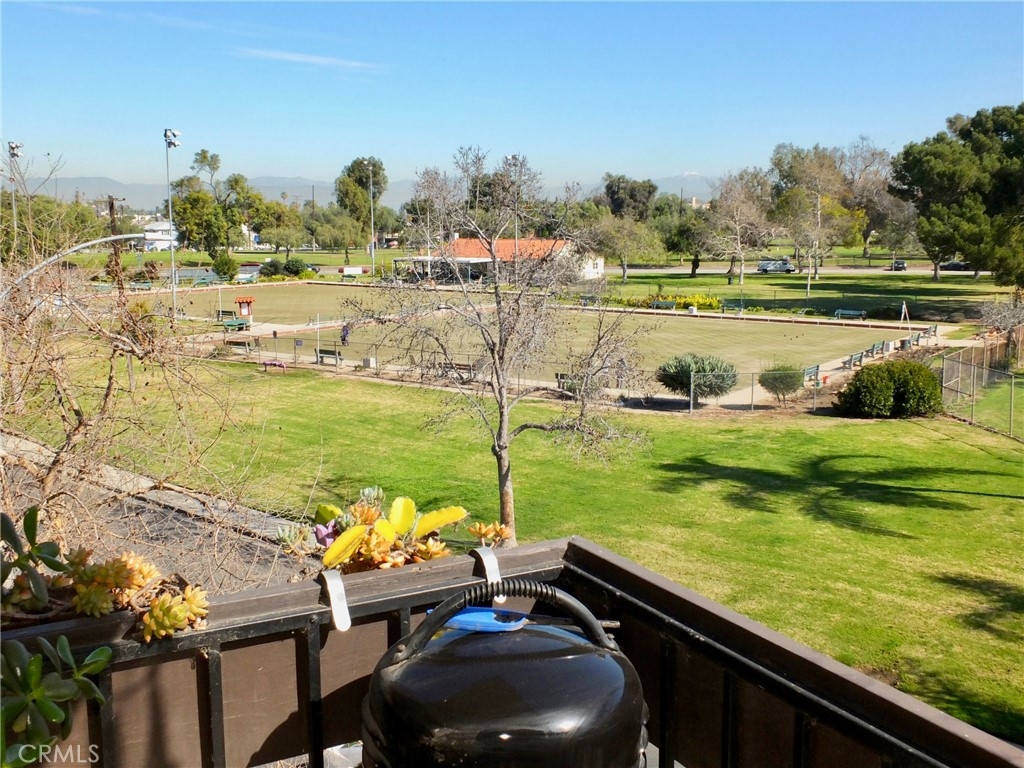 Great top floor unit with tree-top views overlooking Recreation Park, golf course and lawn bowling. This one bedroom one bath unit has been remodeled and features bamboo and tiled flooring, can lighting, granite counters, a custom built-in corner dining banquet and table, plantation shutters and tiled balcony. The kitchen features custom cabinetry with pull out cabinets, wine storage, slate tiled flooring, granite counters and can lighting. The living area has bamboo flooring, plantation shutters and balcony access with tree-top view. The bedroom has a mirrored closet with built-in storage as well as a great built-out niche perfect for a dressing area or the much needed home office area! The complex features a community pool, community laundry on each level and secured parking. Parkview Terrace Manor is located across the street from Recreation Park with golfing, lawn bowling, tennis, a dog park, walking and picnic areas. Wilson High School along with Blair Field baseball stadium are also across the street. This is truly a great location in the city of Long Beach.