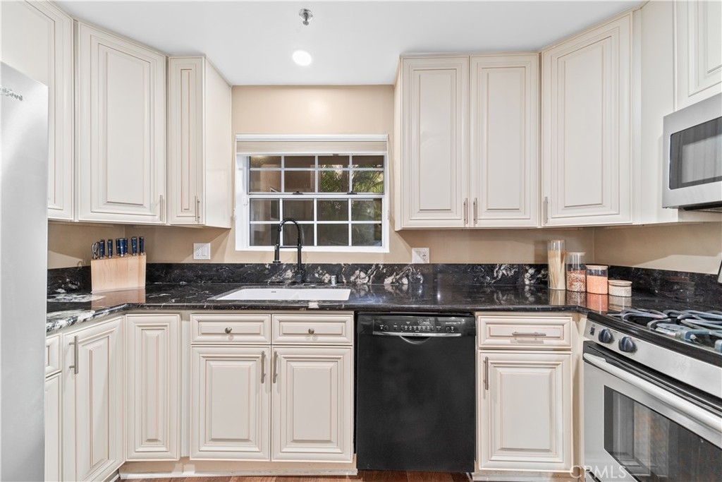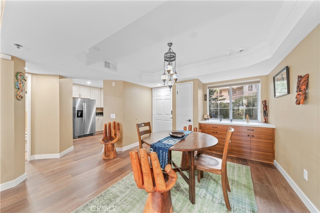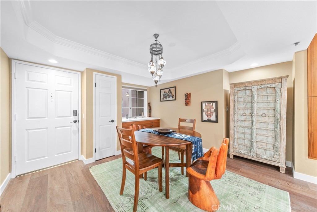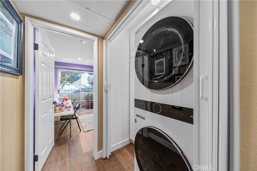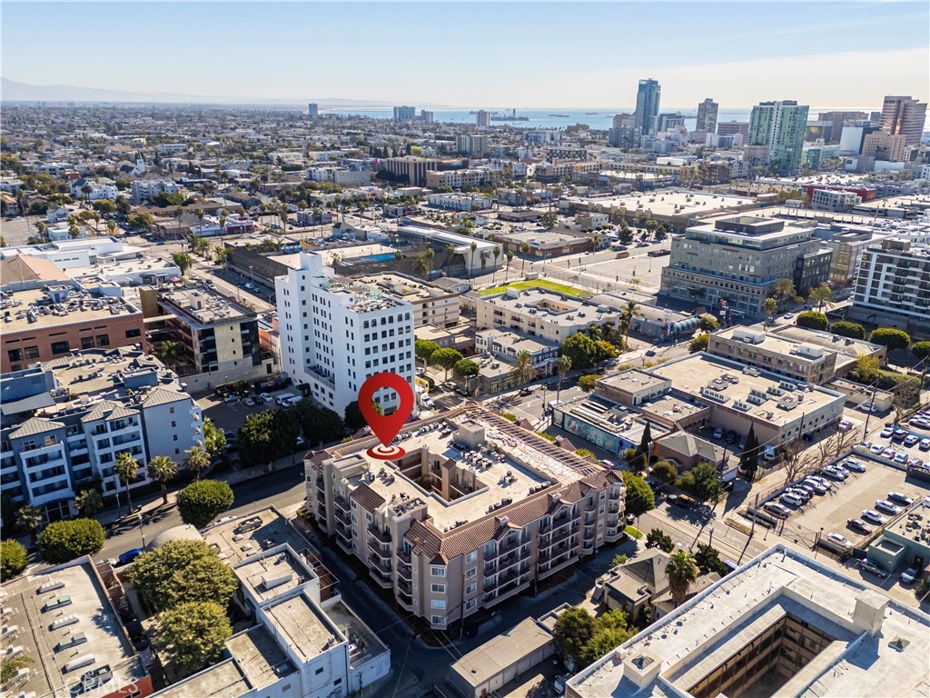 Beautiful condo with 2-bedrooms, 2-bathrooms, 2 parking spaces, in-unit laundry AND central heat & air conditioning! This recently renovated home offers a fantastic layout in addition to all these wonderful features. The main living area is completely open from the front door to the covered balcony that runs the length of the unit. The dining area features a built-in teak buffet, Moroccan light fixture, storage cabinets and a niche perfect for a statement piece of furniture or artwork. The spacious and inviting living room boasts double sliding doors leading to the expansive patio. The kitchen offers light-colored cabinetry, gleaming marble countertops and abundant storage. The bedroom layout is ideal as each bedroom is situated on one side of the living area. The primary suite is a true retreat, offering direct access to the patio, a large walk-in closet, and remodeled en-suite bathroom with a quartz vanity and pretty, etched terracotta flooring. The second bedroom also features a walk-in closet, natural light and access to the balcony. Gorgeous flooring flows through the home and is complemented by the elegant crown molding and recessed lighting. Additional highlights include Hunter Douglas blinds throughout, contemporary light fixtures, decorator paint color and oil rubbed bronze finishes. This is a pet friendly, controlled-access building with a well maintained lobby, roof top deck offering city views, and a central, lushly landscaped courtyard area directly outside this unit. Monthly HOA dues are $443.76 and they cover water, trash and sewer. Located in the heart of downtown you’ll be close to The Pike, Pine Square, Shoreline Village and The Aquarium as well as fantastic restaurants and entertainment. This urban gem is not to be missed!