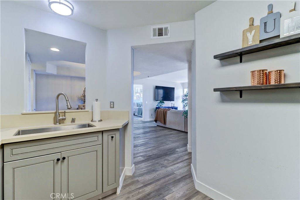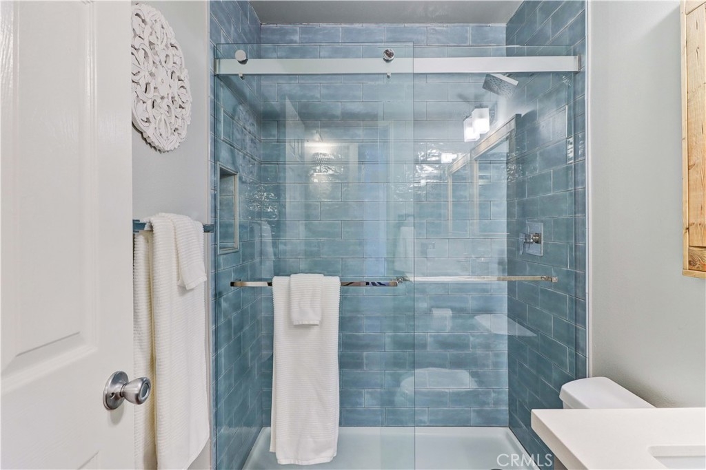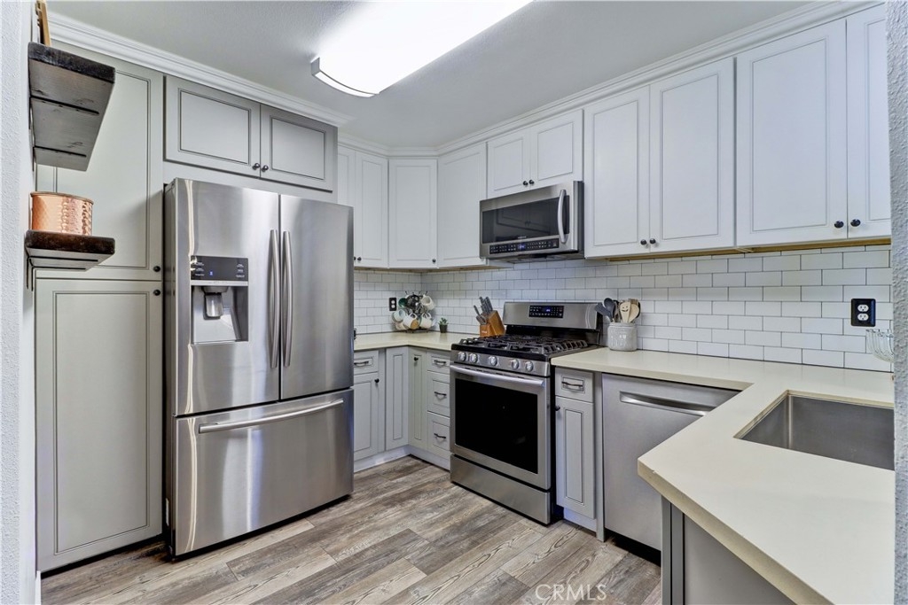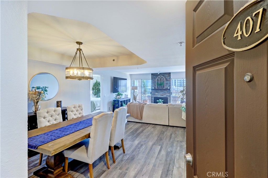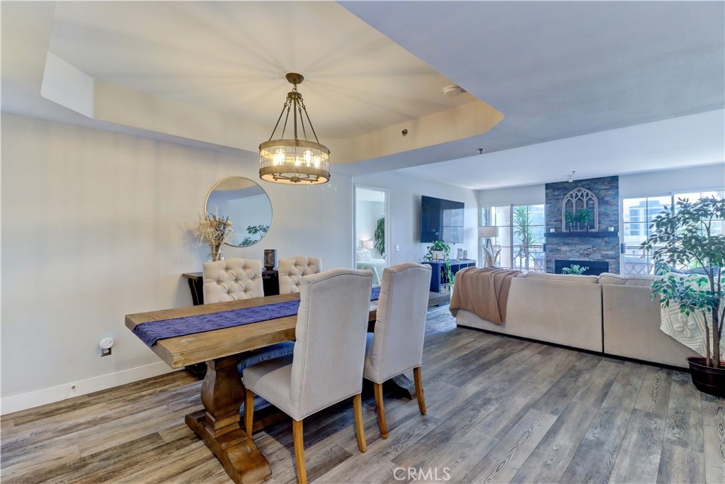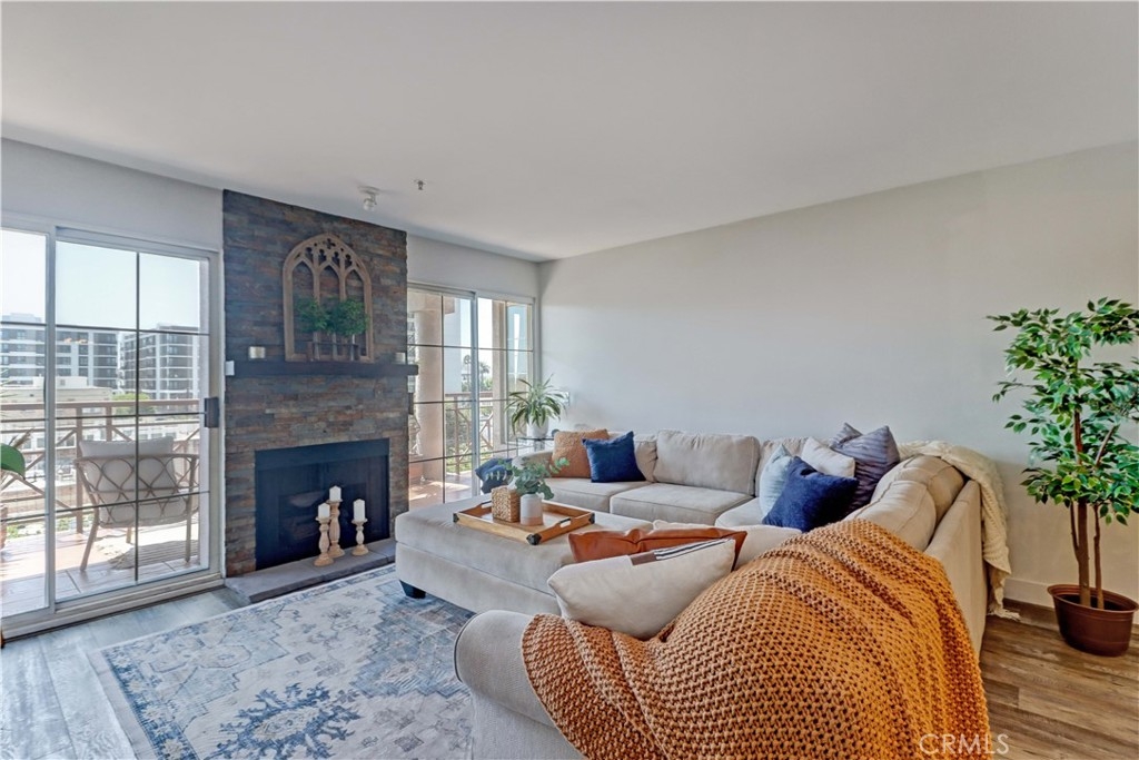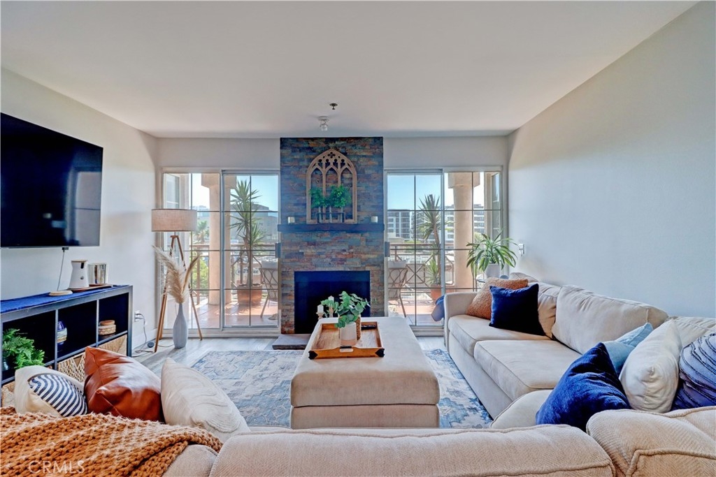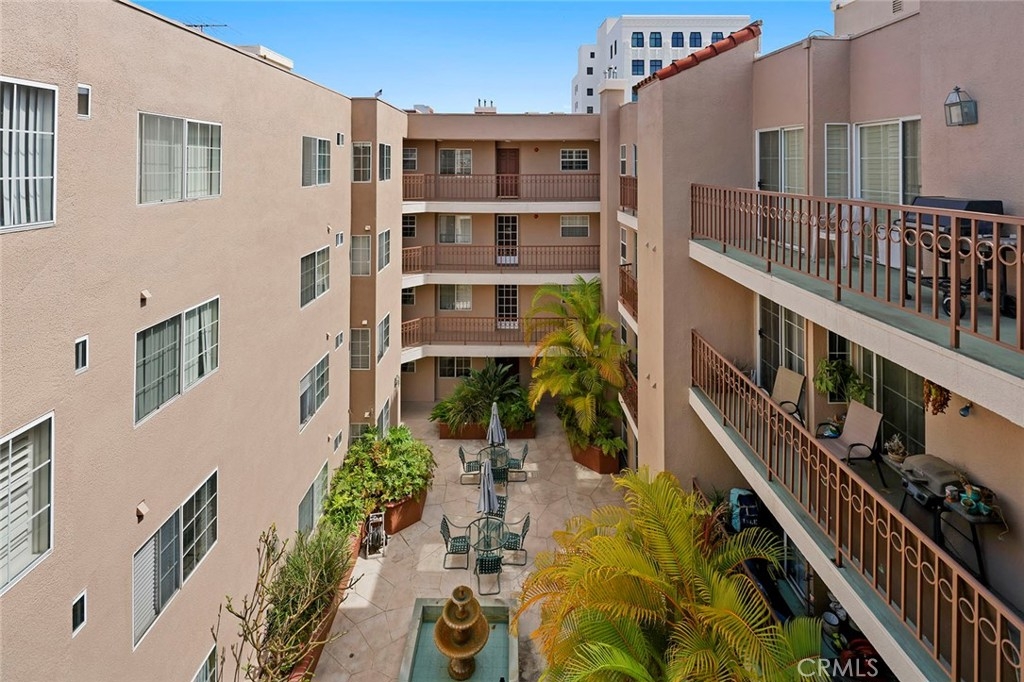 Gorgeous, TOP FLOOR, BEACH CLOSE south facing condo with fabulous VIEWS of downtown Long Beach!!! Boasting a fantastic layout, open floor plan and lots of upgrades, this extra-large two bedroom two bath condo has been beautifully remodeled from top to bottom with impeccable craftsmanship and high quality materials. It’s stunning! New floor-to-ceiling sliding doors and a large balcony span the entire unit - sit, relax and enjoy the view! The living room is huge and has a striking custom stacked stone fireplace as its focal point. The dining area is open to the living room and kitchen, creating a great flow to the space. It has a coffered ceiling, lovely custom chandelier and a full wet bar. The kitchen is a showstopper with its custom soft close wood shaker style cabinets, Quartz counters, custom backsplash, large single basin stainless steel sink, suite of stainless appliances and ample storage. The chef in the family will love cooking here! The bedrooms are located on each side of the living room for maximum privacy. The primary bedroom is quite big and has a gorgeous en suite bathroom that feels like a spa. It has dual vanities, custom Quartz counters, custom lighting, a large soaking tub and a walk-in shower. The second bedroom is very good sized and has a walk-in closet. A second full bathroom has custom tile, vanity and lighting. Other features include an in unit side-by-side washer and dryer (new!); central heat and air (new AC unit!); luxury vinyl plank flooring throughout; recessed lights; custom paint and accent lighting. The unit also comes with two parking spaces and a private storage locker. Bike and pet friendly, 801 Pine has a lovely roof top patio, center courtyard with seating, bike storage, community room and guest parking. The location is fantastic - in the heart of downtown Long Beach's historic Pine Avenue. This fun and hip area is close to everything Long Beach has to offer, there is so much to do right outside your door! Savor sunsets on the beach, enjoy movies, concerts, galleries, farmers' markets, a large variety of restaurants, shops and entertainment, plus easy access for commuters – you are close to public transportation and freeways. You’ll even be front and center when the Olympics come to town. Don’t miss this great opportunity!