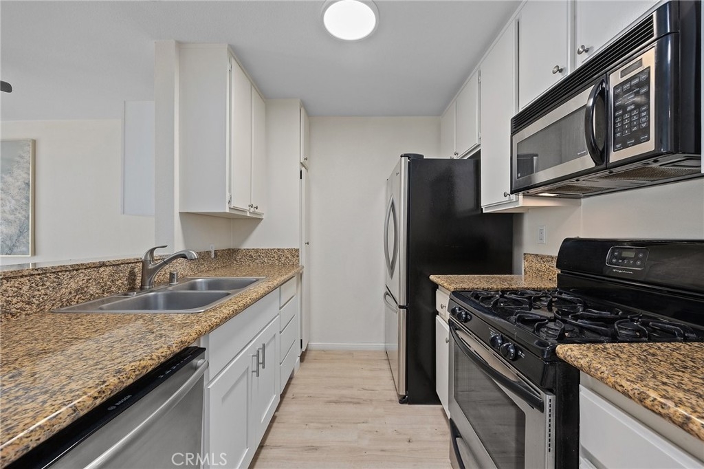 Remodeled and ready to move in! Beautiful 2-bedroom 2 bath home located on 2nd level with no one above. Bright open floorplan, spacious livingroom with access to a large balcony. Kitchen has granite counters, new bathroom flooring, stainless steel appliances, includes range, microwave, refrigerator and dishwasher, opens to living room area with a breakfast bar. New 100% waterproof scratch-resistant antimicrobial rigid 6 mm vinyl flooring throughout, new drywall, baseboards, both baths remodeled, new shower, new toilets, new vanities with stone counter tops. Secure subterranean parking with 2 parking spaces. Community laundry in garage area. Secure gated complex. Convenient to Downtown Long Beach, adjacent to two Metro lines and freeways.