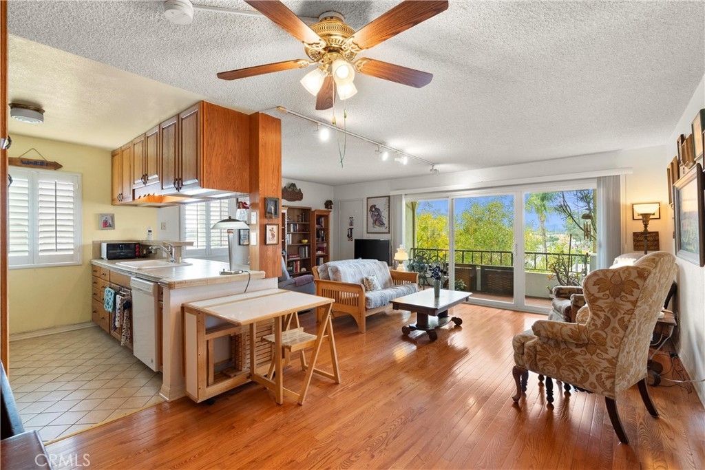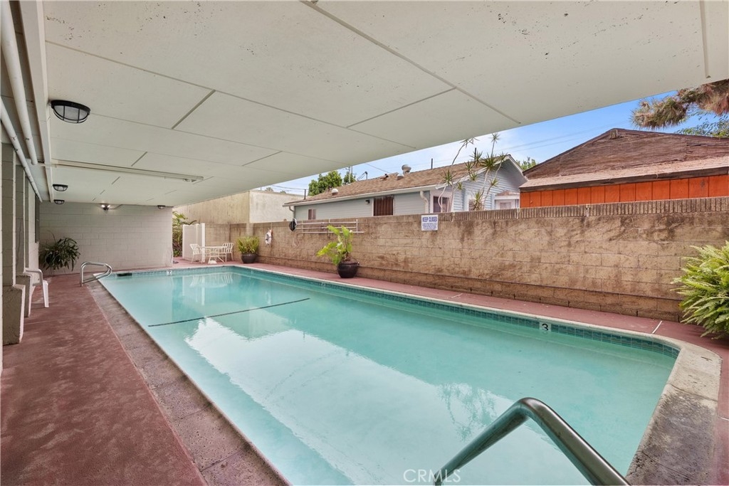 This is the perfect starter home with a small office area for remote workers. If you love Retro Row (4th St) you're gonna love this location! The unit number is 301 but it's really on the 4th floor with gorgeous views of the skyline of downtown LB at night. This is the top floor, end unit so only one common wall. Dual paned windows and sliders let loads of natural light in. There is a lot of storage in the unit, for example, the seller added a double row of upper kitchen cabinets for your small appliances and a pantry for your dry goods. The bathroom has a separate tub and shower. The large living room can be used several ways to accommodate your needs. This small community of 36 units has a locked lobby, a common room with an Amazon locker for deliveries and a pool for those hot summer days. The ground level has a locked parking garage with overhead storage and bike racks.