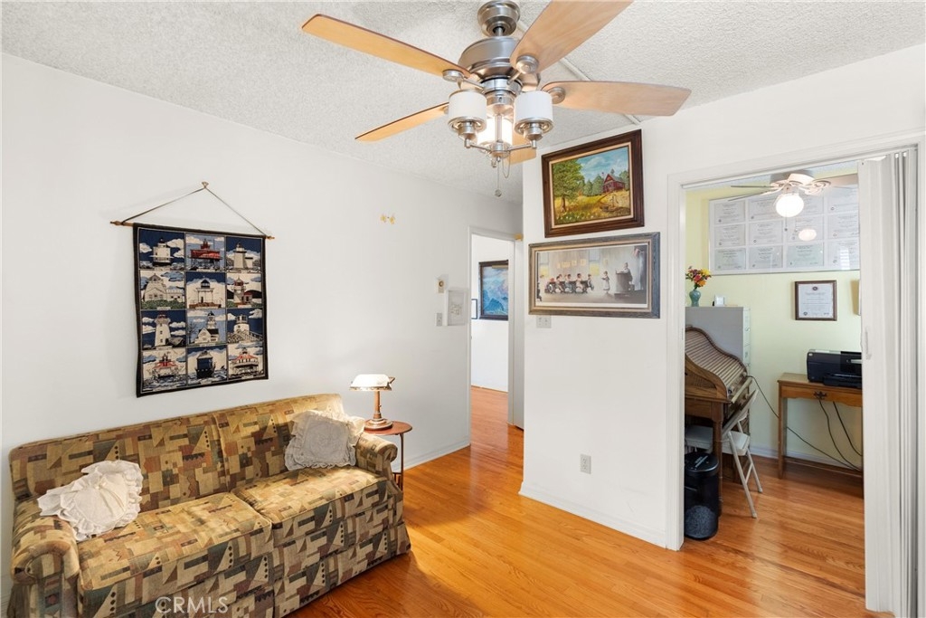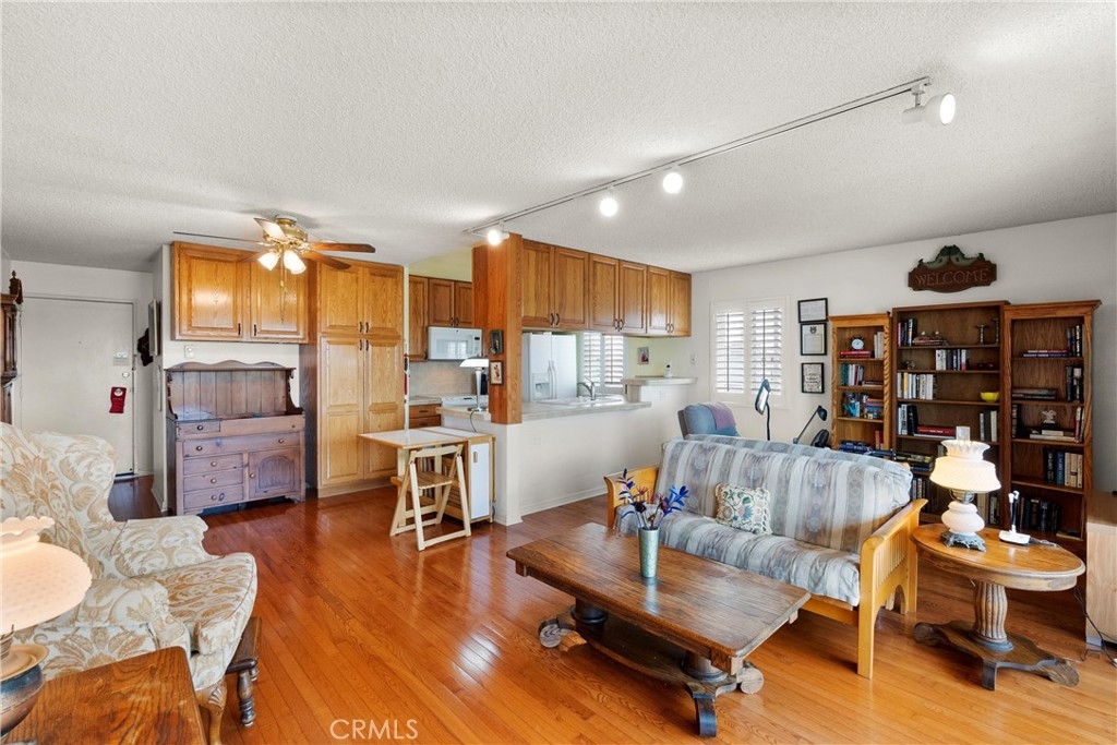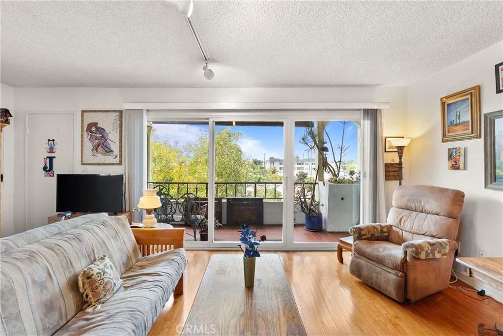This is the perfect starter home with a small office area for remote workers. If you love Retro Row (4th St) you're gonna love this location! The unit number is 301 but it's really on the 4th floor with gorgeous views of the skyline of downtown LB at night. This is the top floor, end unit so only one common wall. Dual paned windows and sliders let loads of natural light in. There is a lot of storage in the unit, for example, the seller added a double row of upper kitchen cabinets for your small appliances and a pantry for your dry goods. The bathroom has a separate tub and shower. The large living room can be used several ways to accommodate your needs. This small community of 36 units has a locked lobby, a common room with an Amazon locker for deliveries and a pool for those hot summer days. The ground level has a locked parking garage with overhead storage and bike racks.