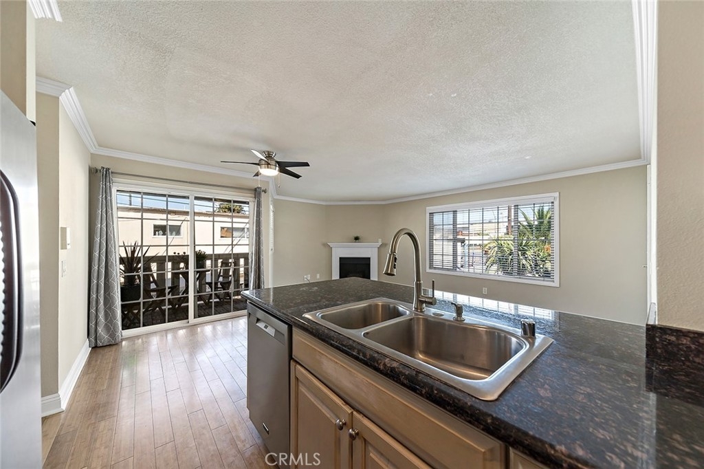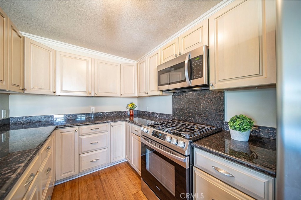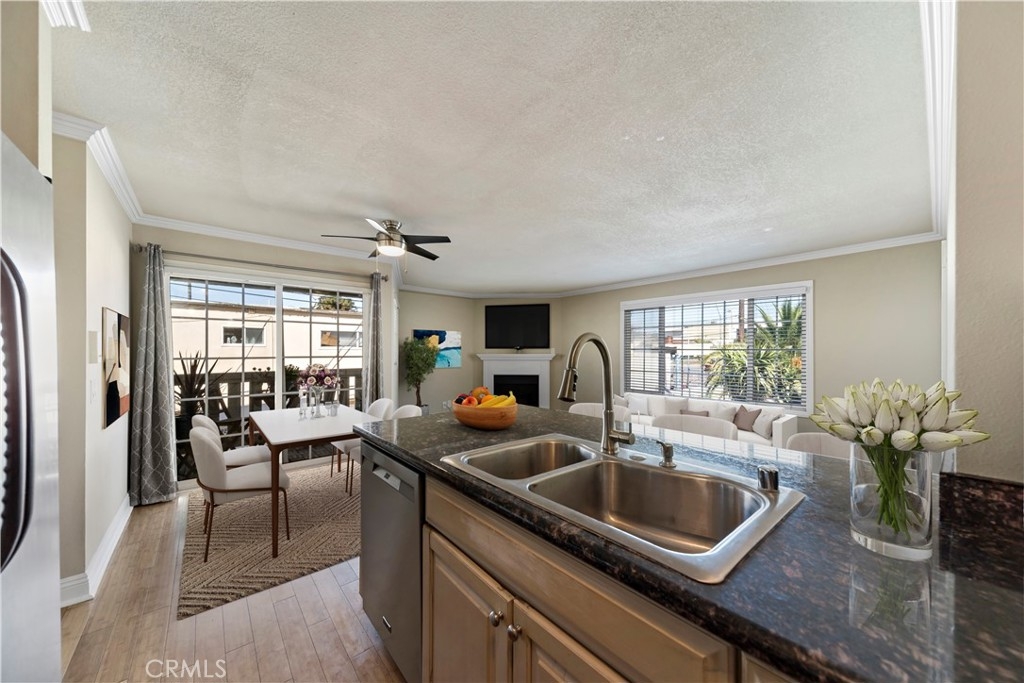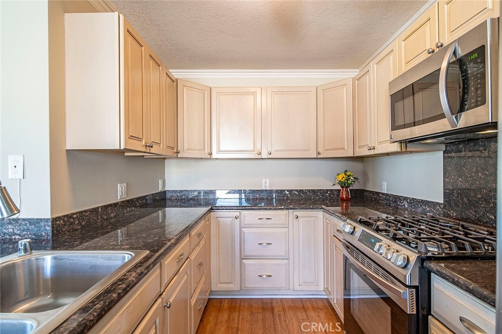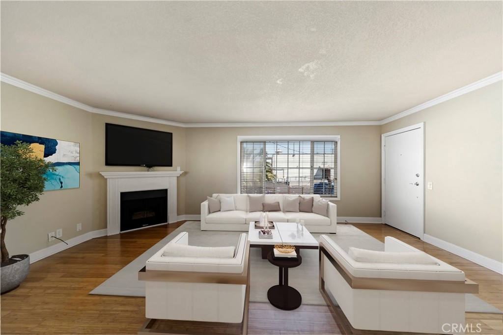 This stunning end unit features a beautifully upgraded kitchen with custom cabinetry, granite countertops, stainless steel appliances, and a gas range/oven. The spacious bathrooms complement the luxurious feel throughout. Enjoy the beauty of California sunsets from your large, private balcony. The thoughtfully designed floor plan maximizes natural light and invites refreshing ocean breezes from the nearby shores. The unit boasts bamboo floors, a cozy fireplace, a primary bedroom with en suite bathroom and a second large bedroom that offers stunning views of the downtown skyline and city lights. Ample storage is provided with built-in storage shelving, double closets and a mirrored wardrobe. The convenience continues with an in-unit washer and gas dryer, plus a unit-specific hot water heater. This centrally located, pet-friendly complex offers a secure building, large enclosed garage, and two private storage units, making it the perfect place to call home. Don’t miss out on this amazing property in Long Beach!