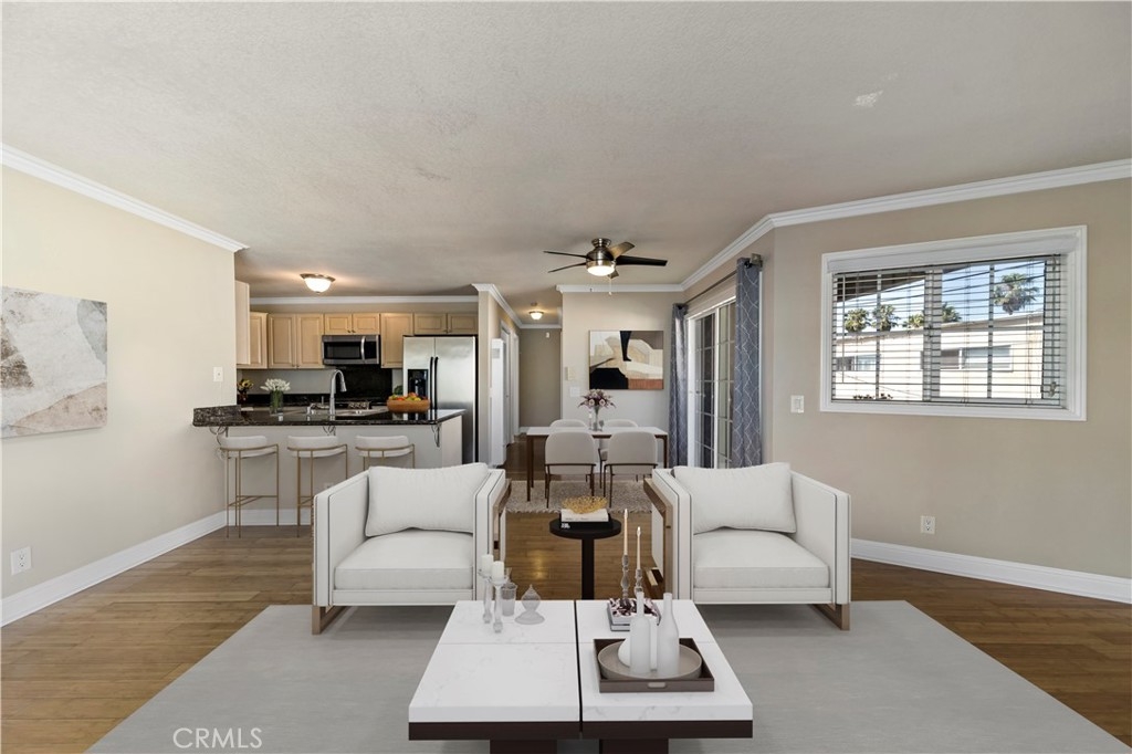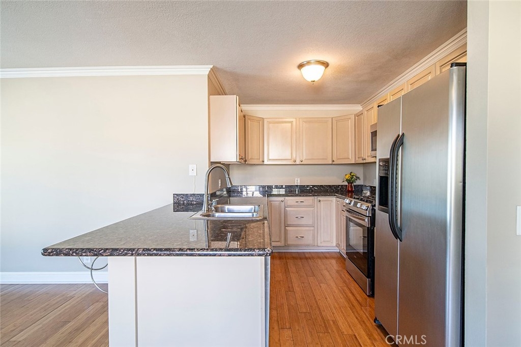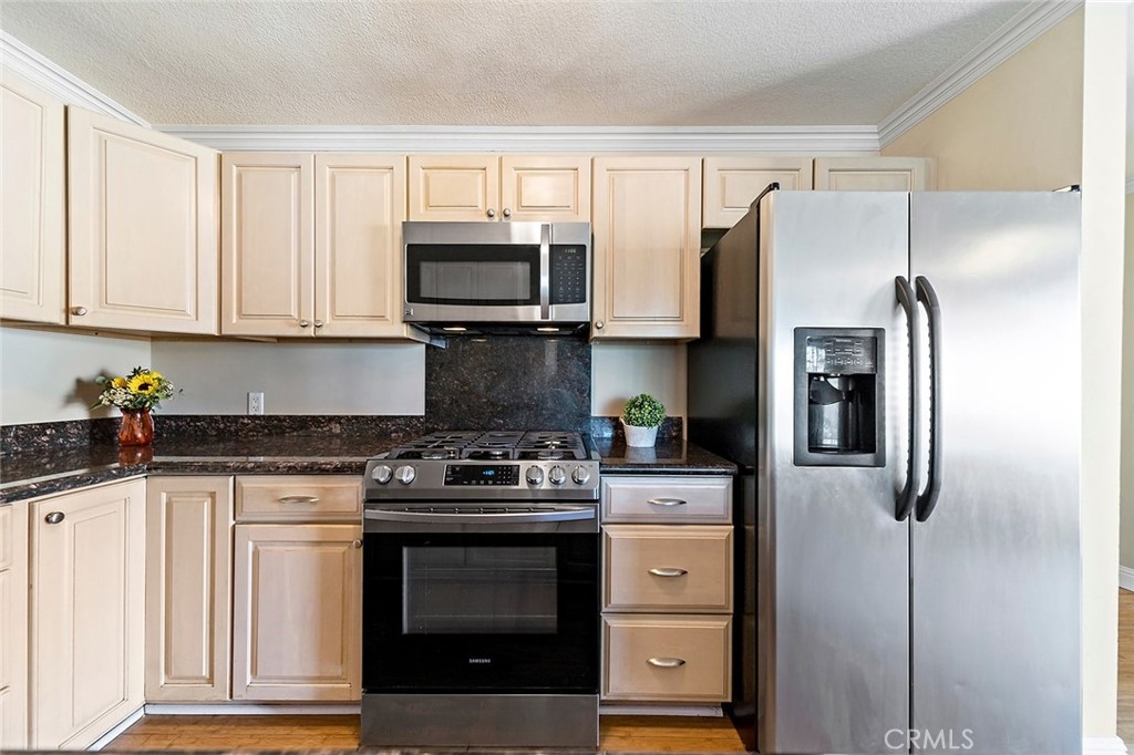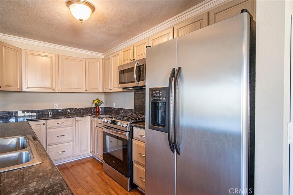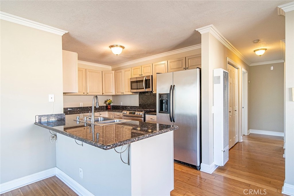 This stunning end unit features a beautifully upgraded kitchen with custom cabinetry, granite countertops, stainless steel appliances, and a gas range/oven. The spacious bathrooms complement the luxurious feel throughout. Enjoy the beauty of California sunsets from your large, private balcony. The thoughtfully designed floor plan maximizes natural light and invites refreshing ocean breezes from the nearby shores. The unit boasts bamboo floors, a cozy fireplace, a primary bedroom with en suite bathroom and a second large bedroom that offers stunning views of the downtown skyline and city lights. Ample storage is provided with built-in storage shelving, double closets and a mirrored wardrobe. The convenience continues with an in-unit washer and gas dryer, plus a unit-specific hot water heater. This centrally located, pet-friendly complex offers a secure building, large enclosed garage, and two private storage units, making it the perfect place to call home. Don’t miss out on this amazing property in Long Beach!