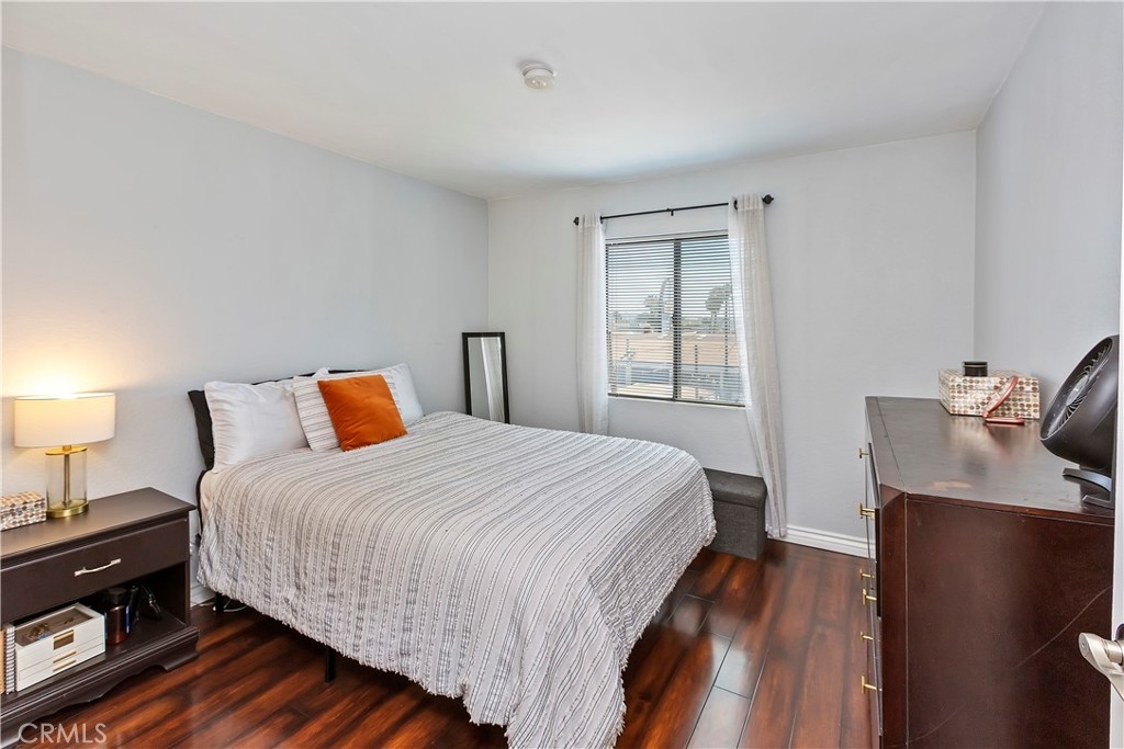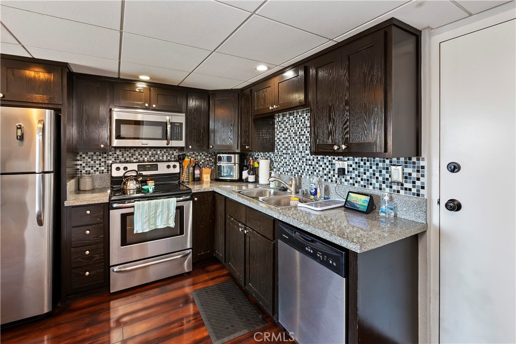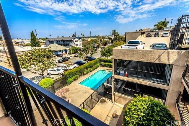 Turn key, top floor one bedroom, one bath condo with all the amenities you need near downtown Long Beach. Unit features wood laminate flooring, central heat and air conditioning, private balcony, assigned parking and plenty of extra parking. Kitchen features granite counter tops, stainless steel appliances complete with dishwasher, stove, refrigerator and microwave. Secure access building has beautiful pool and rec-room and is steps away from the blue line Metrolink stop to Downtown Los Angeles.