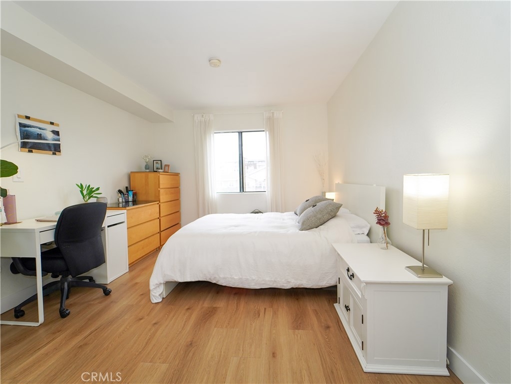 Top-floor condo in the heart of Long Beach! This bright and inviting 2-bedroom, 2-bath unit features fresh paint and warm luxury vinyl plank flooring throughout, complemented by a brand-new A/C system for year-round comfort. The open-concept living area flows seamlessly into the kitchen and leads to a private balcony with views of Downtown Long Beach. The spacious primary suite includes an en-suite bathroom, while the second bedroom offers generous space and a similar layout. Other amenities include:1 assigned parking space, 1 additional transferrable parking space with $75 monthly fee, and pool.
