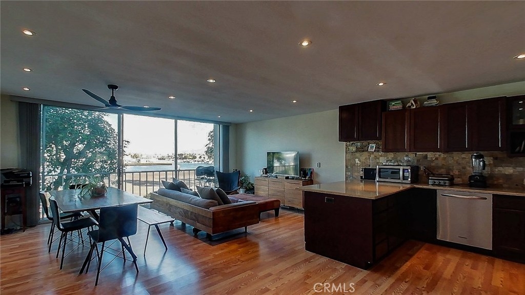 This relaxing and entertaining location can be your home or vacation getaway. With views of Marine Stadium, Alamitos bay and San Gabriel mountains. Upgrades include heated flooring, Quartz countertops, Shenandoah cabinets with slideouts, stainless steel built-in Chef's oven, tankless water heater and remodeled bathroom. All this within a short distance to shops, dining, entertainment, watersports, farmers markets and much more.