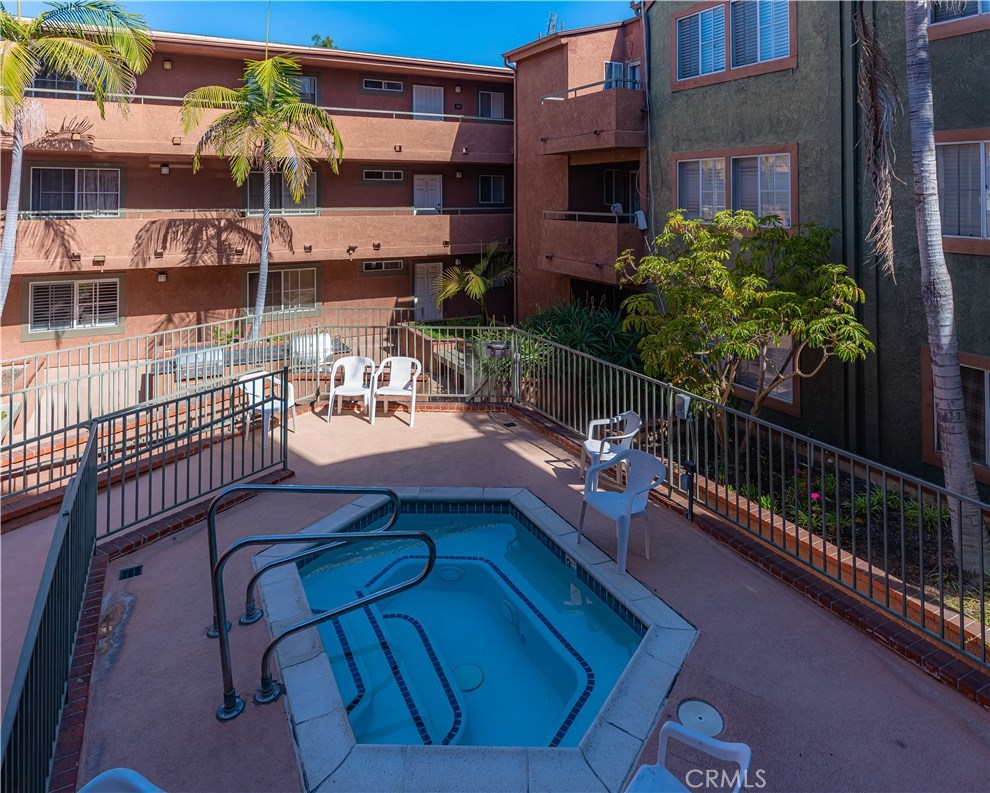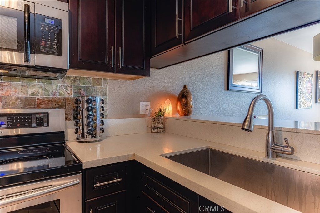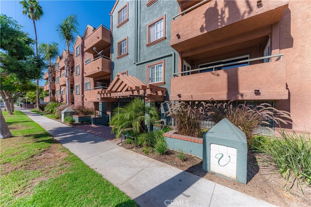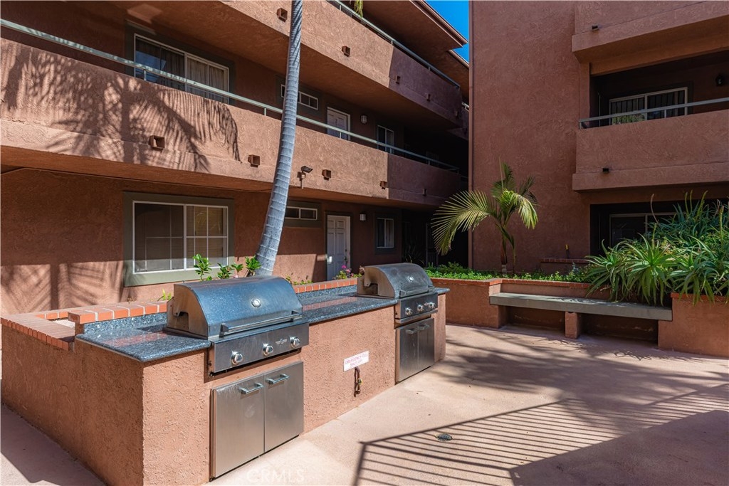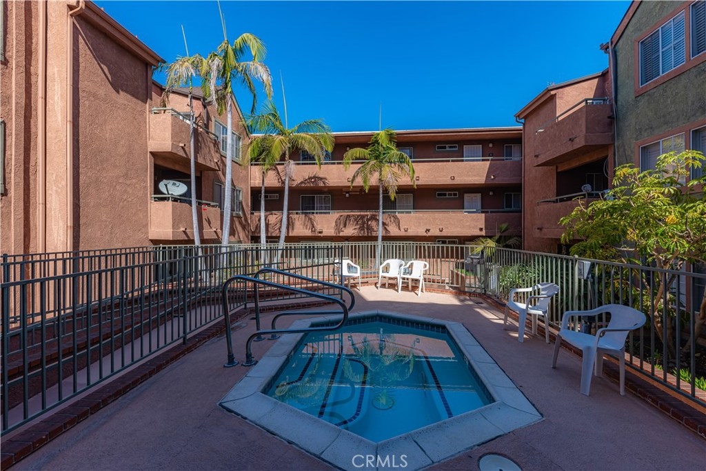 Oversized rare corner unit, with balcony, 2 assigned secure parking spots and guest parking in gated carport. This second floor unit has ultra-modern feel, scraped ceilings and is located in desirable area of Long Beach. This 2 bedroom/2 bathroom condo has lots of beautiful upgrades, including laminate wood flooring, espresso colored kitchen cabinets with modern hardware, jade tile full backsplash and quartz counters in the kitchen and bathrooms. The kitchen is bright, spacious, with stainless steel appliances, including electric oven/cooktop, breakfast bar and lots of storage space! Open concept unit with dining area in the living room and one of two sets of sliding glass doors that lead to the south facing private balcony with a view of Signal Hill. Both the master bathroom and guest bathroom have modern sinks, shower in tub and tile accents and have the same beautiful dark wood cabinets and hardware as in the kitchen. The bedrooms are both spacious with windows and laminate flooring. The master bedroom has a large closet and the second set of sliding glass doors that lead to the balcony. The guest bedroom has walk-in closet. Complex amenities include recently upgraded gym, large entertainment room with TV and kitchen, outdoor cooking area/BBQs and Spa/hot tub. The building has a security system and is well maintained. HOA pays for all utilities except Electric and Cable. This is a VA and FHA approved condo and perfectly situated between Los Angeles and Orange Counties.