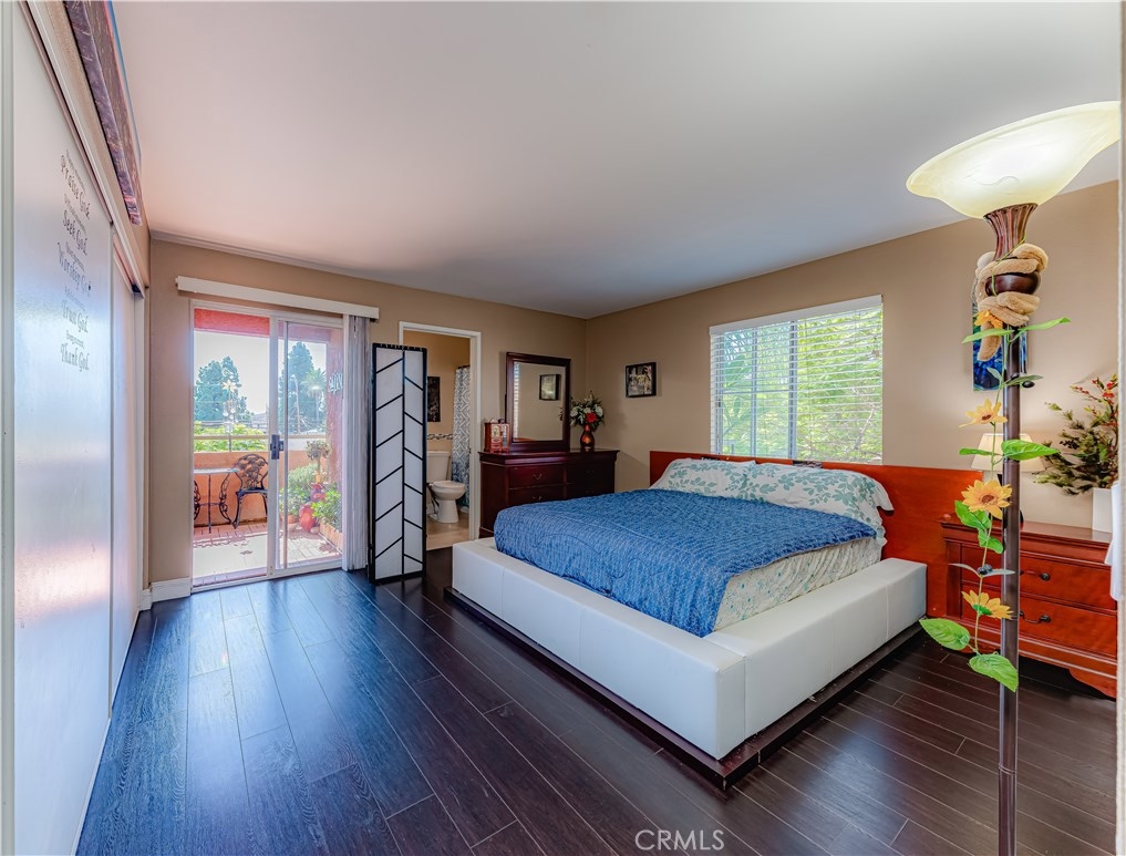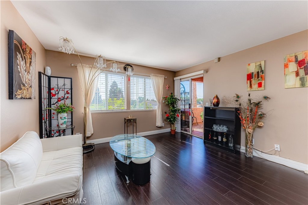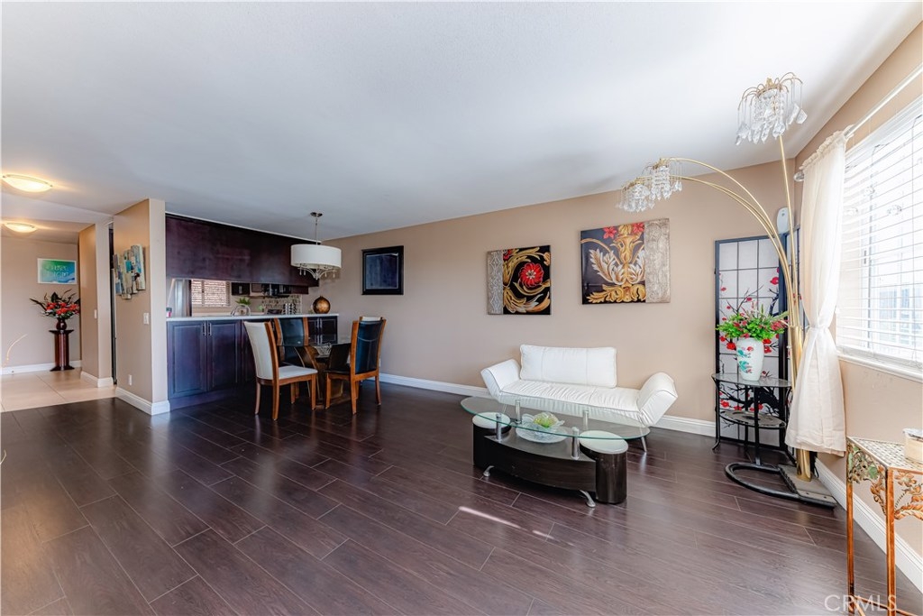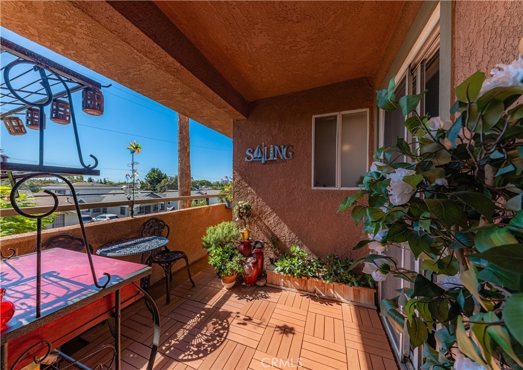 Oversized rare corner unit, with balcony, 2 assigned secure parking spots and guest parking in gated carport. This second floor unit has ultra-modern feel, scraped ceilings and is located in desirable area of Long Beach. This 2 bedroom/2 bathroom condo has lots of beautiful upgrades, including laminate wood flooring, espresso colored kitchen cabinets with modern hardware, jade tile full backsplash and quartz counters in the kitchen and bathrooms. The kitchen is bright, spacious, with stainless steel appliances, including electric oven/cooktop, breakfast bar and lots of storage space! Open concept unit with dining area in the living room and one of two sets of sliding glass doors that lead to the south facing private balcony with a view of Signal Hill. Both the master bathroom and guest bathroom have modern sinks, shower in tub and tile accents and have the same beautiful dark wood cabinets and hardware as in the kitchen. The bedrooms are both spacious with windows and laminate flooring. The master bedroom has a large closet and the second set of sliding glass doors that lead to the balcony. The guest bedroom has walk-in closet. Complex amenities include recently upgraded gym, large entertainment room with TV and kitchen, outdoor cooking area/BBQs and Spa/hot tub. The building has a security system and is well maintained. HOA pays for all utilities except Electric and Cable. This is a VA and FHA approved condo and perfectly situated between Los Angeles and Orange Counties.