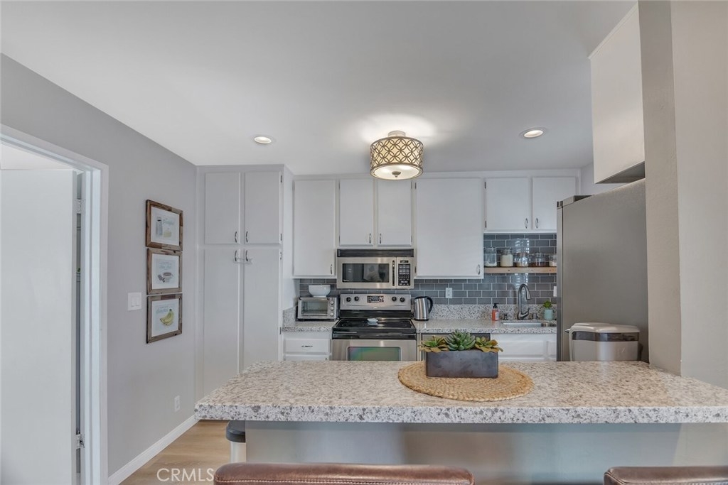Belmont Heights area: One of the few 2 Bedroom, 2 Bath condos at South Newport on Newport Ave and 3rd Street in Long Beach. Great location Just a few minutes from the beach, shopping, and dining. Located on the second level, the Private Courtyard leads to your Entry Way. This home has recently been Remodeled and Updated with Wide Plank Wood Laminate Flooring throughout. The Upgraded Kitchen features attractive Granite Countertops with updated backsplash, Stainless Steel Appliances, Breakfast Bar and Dining Area. The Master Suite includes an Upgraded Bath featuring newer cabinets and granite counters. The second bedroom also has a Full Bath. Recessed Lighting has also been updated. Private Outdoor Balcony overlooking Community Pool. Another great feature; this home includes 2 Garage Parking Spaces, and has 3 Storage Cabinets. The Largest floor plan, 2 full baths, And the most parking and storage. Move in ready and most for the money!