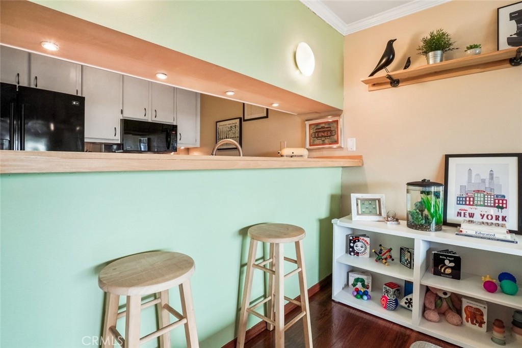 Home Sweet Home. Two bedroom/one bathroom 995 square foot condo with a separate office. Office ~~ with the exterior door Three balconies with tree top views from this top floor unit. Hardwood floors in living room, dining room and hall. Carpet in bedrooms and office. Custom color walls, crown moldings, recessed lighting. The bathroom was just completely remodeled in quiet good taste using finest materials and workmanship. The bathroom had a large soaking tub -- absolutely beautiful. While you will have breezes witth the glass sliding doors in the living room, there are two wall air conditioning units just in case. The office adjoins the master bedroom with a wall of windows and a walk in closet. The kitchen has been freshly painted and includes range, refrigerator, microwave and dishwasher. All this in the heart of Belmont Heights. This is a must have.