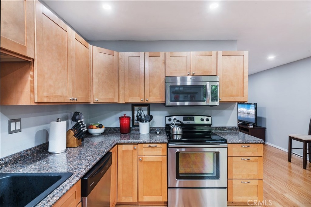 BACK ON MARKET! This handsomely appointed Bluff Heights condo is generously sized and has a light and bright open floor plan. It is an end unit that is conveniently located towards the front of the building. There is wood bamboo flooring throughout the living area and newer plantation shutters in the living room and bedroom. The kitchen has an updated look with maple style cabinets and stainless steel style knobs. Newly installed recessed lighting illuminates the entire unit. The bathroom is also updated with newer vanity and tub/shower surround. The slider door in the dining/kitchen area leads to a tranquil south facing patio/balcony that is perfect for unwinding and relaxing. There are newer windows throughout and new electric ceiling heaters in the living room and bedroom. The building offers a pool tucked privately in the rear of the property and 1 secure parking space with storage is included. This lovely home is turn-key and ready for a new owner.