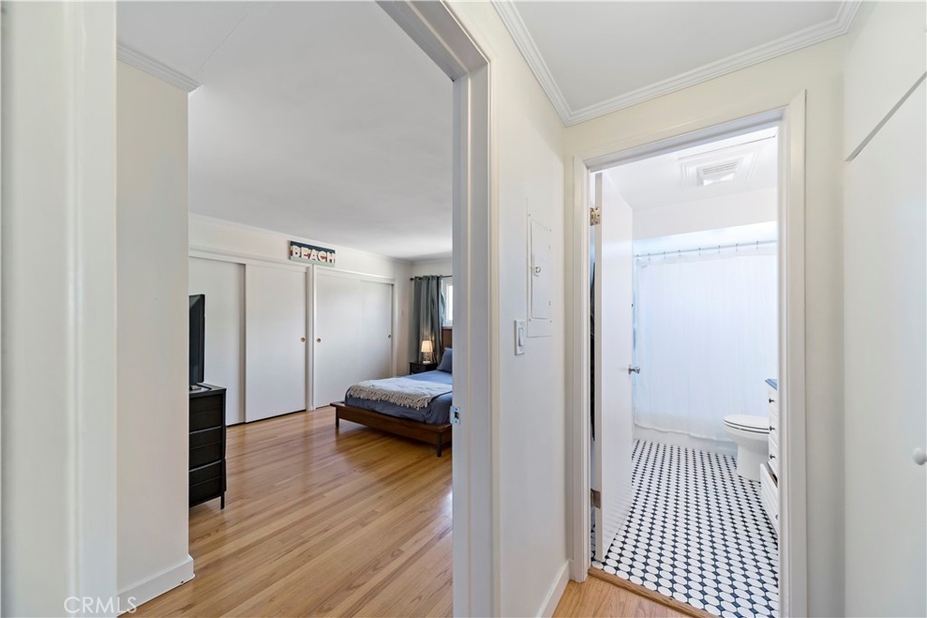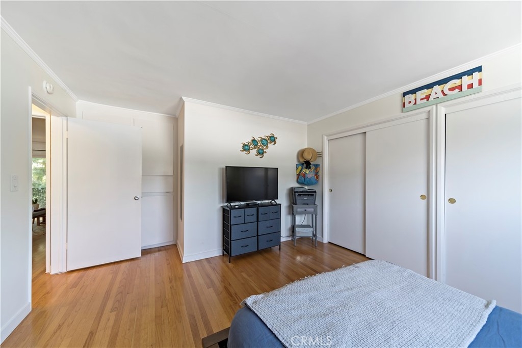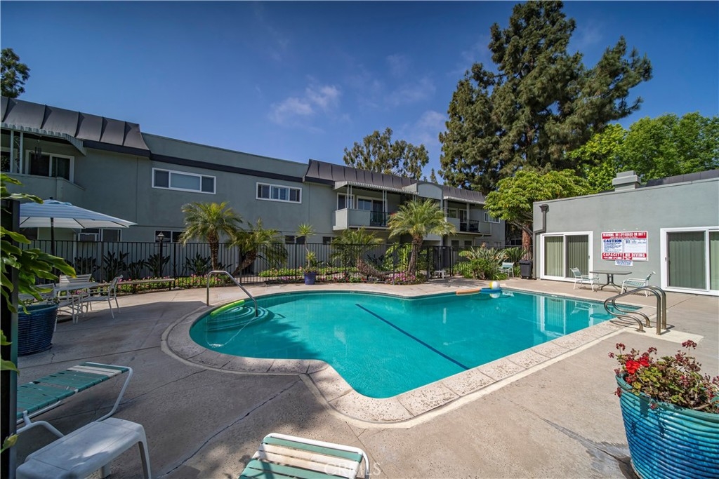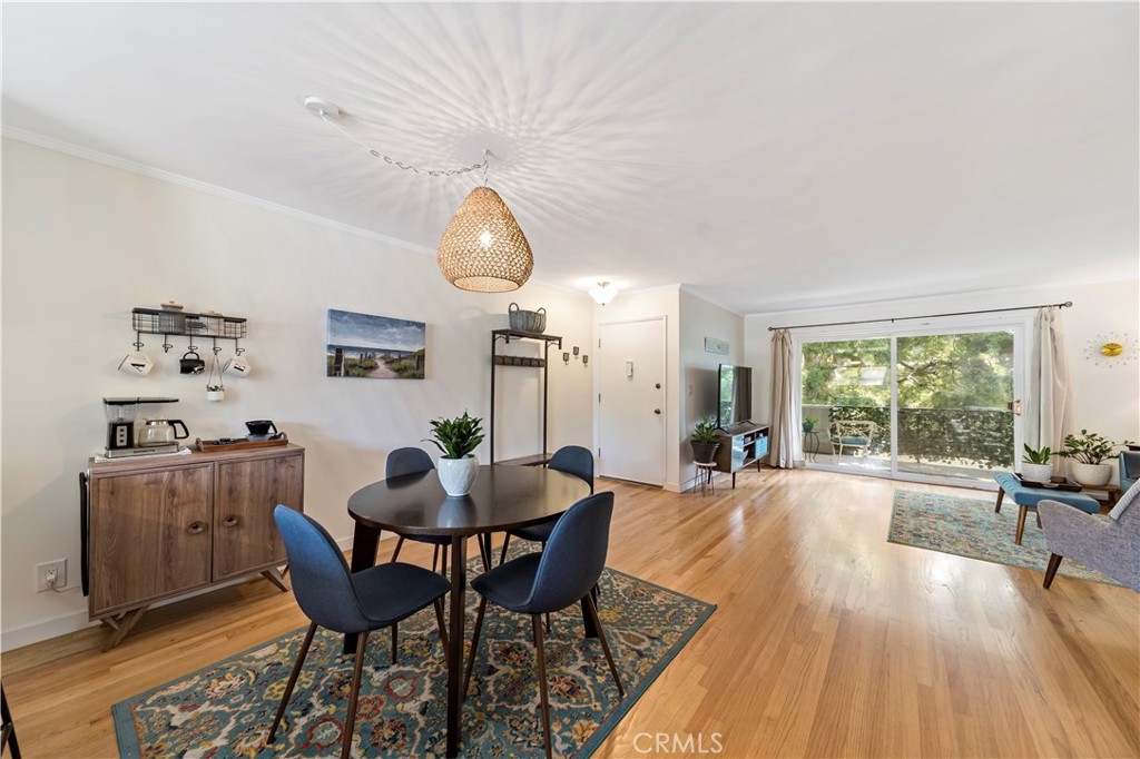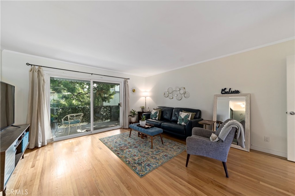 Welcome to this upper level 1-bedroom, 1-bathroom, 796 square foot property with a 1-car detached garage located in Sovereign Park Estates. This delightful unit offers hardwood floors throughout, smooth ceilings and a private balcony overlooking the tree top views. The kitchen has nice cabinetry, oversized tile floors, cool open shelving and a breakfast bar/peninsula. The dining area is located off the kitchen and flows into the charming living room. The open concept floor plan allows for fantastic entertaining including the serene outdoor space, which offers an extension of your living area. The nicely sized bedroom is bright and has double, side by side closets. Off the hall is the updated bathroom with a black-topped vanity, classic tile, and a shower/tub combination. The home is located within a beautifully landscaped community with several pools, clubhouses, community laundry and exercise room. The HOA fees cover basic cable TV, WIFI, water, sewer, trash, landscaping and some interior repairs of the unit. Pets are allowed - 1 dog under 35 pounds (certain breeds are excluded), 1 dog and 1 cat, or 2 indoor cats.
