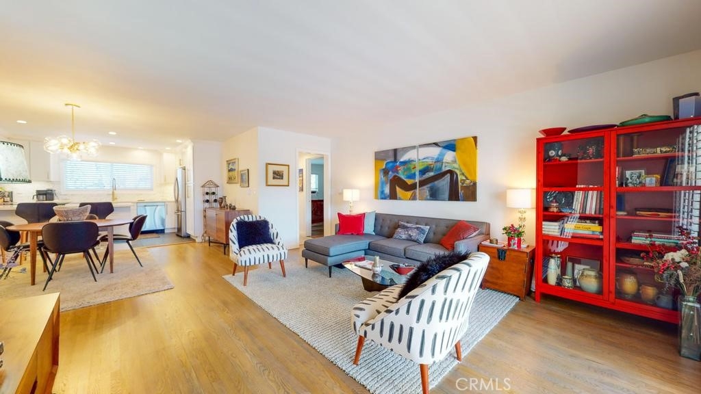 Highly desired Sovereign Park Estates! Spacious upper floor unit with beautifully refinished hardwood floors throughout. Newly remodeled kitchen with manmade stone counters, stainless steel all electric range & oven, large capacity stainless steel side by side refrigerator included. Lovely Shaker style white cabinets enhance the spacious kitchen open to the dining area & living room. All electric kitchen with recessed lighting for your cooking enjoyment and entertaining. Beautiful slate stone floors in kitchen. Upgraded with dual paned windows recently installed in kitchen, bedroom and bath. Relax on the large private balcony overlooking a lush greenbelt and fenced swimming pool for your quiet times. Community amenities includes; 5 swimming pools, 4 clubhouses, a hobby room, gym, billiard room, & library for your entertainment. More incredible features include Frontier basic cable and internet, water and trash are included in monthly HOA dues. This fabulous unit is located near parks, schools, dining, shopping and CSULB. Assigned parking in detached garage. Beautifully decorated and comfy environment to call home!