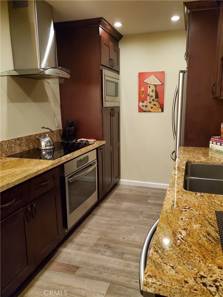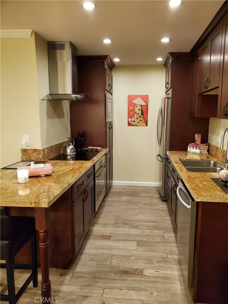 Totally upgraded condo with a lovely semi-private patio to create your zen garden. Facing Bellflower Blvd this unit provides a great location for pet owners to access the side gate to come and go. The patio allows a beautiful scenery to enjoy. Inside the kitchen has been completely upgraded with stainless steel appliances including microwave, expanded cooktop and oven - all perfect for the chef in the family. The kitchen also has upgraded cabinets and granite counter tops. The kitchen overlooks the great room and dining area which is comfortable for having guest over and entertaining. The bar counter has been extended to provide counter seating and room to prepare holiday meals on a beautiful granite top. Both bathrooms have been upgraded with new cabinetry and marble countertops. The flooring throughout has been upgraded and designed to compliment the unit and cabinetry throughout with a modern grey wood and dark wood tile. This unit has smooth ceilings and recessed lighting with most set on dimmer adjustments to capture the perfect lighting day or night. The doors are custom inside and designed to provide an extra flair. This is a must see unit. Stoneybrook Villas is an ideal location in Long Beach near the water, 2nd st, 2nd St & PCH, the marina, CSULB, Seal Beach. The complex offers a beautiful pool area, tennis courts, clubhouse, recreation room, and so much more.