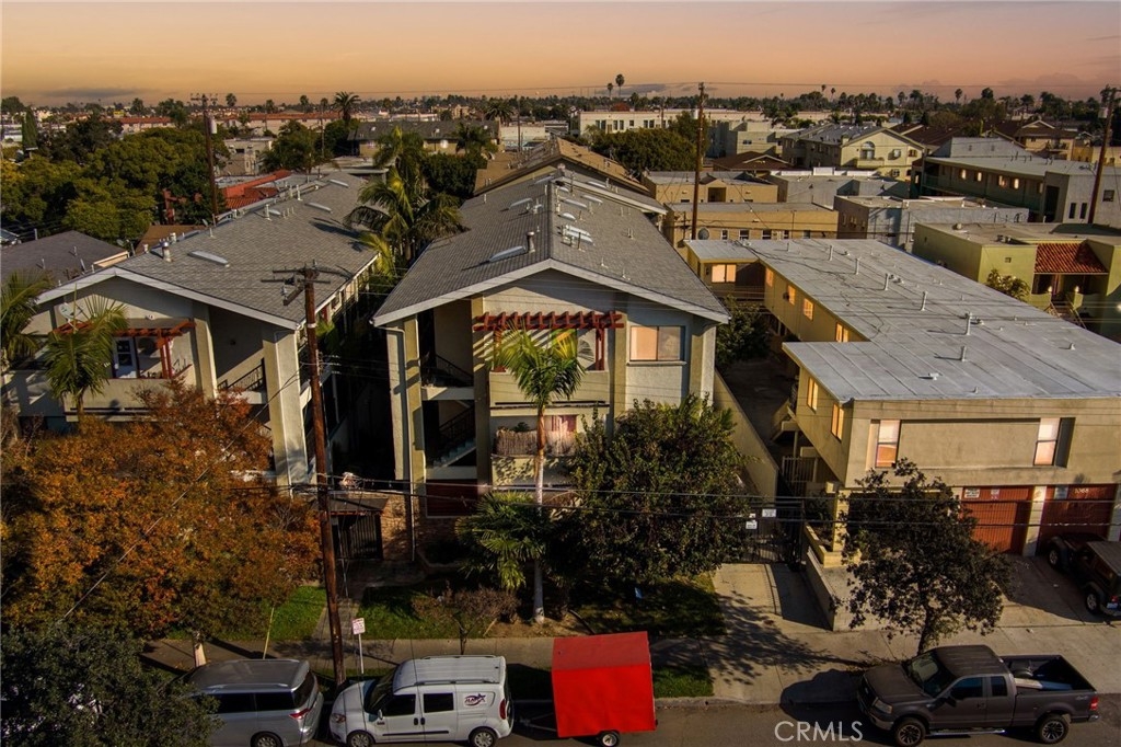 Discover this unique top-floor corner condo, nestled just beyond the Rose Park Historic District and only a mile from the beach. Freshly painted and sharing only one wall, this rare find features high cathedral ceilings and an open floor layout that amplifies its spacious and airy ambiance. The contemporary kitchen is a standout with granite countertops and stainless steel appliances. It boasts two generously sized bedrooms, the master complete with a private bathroom, each featuring a shower-tub combo and granite vanity tops. A key highlight is the condo's exclusive amenities: two secured, gated parking spaces, a private storage room, and an in-unit stackable washer and dryer, adding everyday convenience to your lifestyle. The expansive private balcony offers serene views, ideal for relaxation. Ideally situated, this condo offers easy access to Retro Row, Cal State Long Beach, and the downtown area, blending tranquil coastal living with a vibrant urban experience.