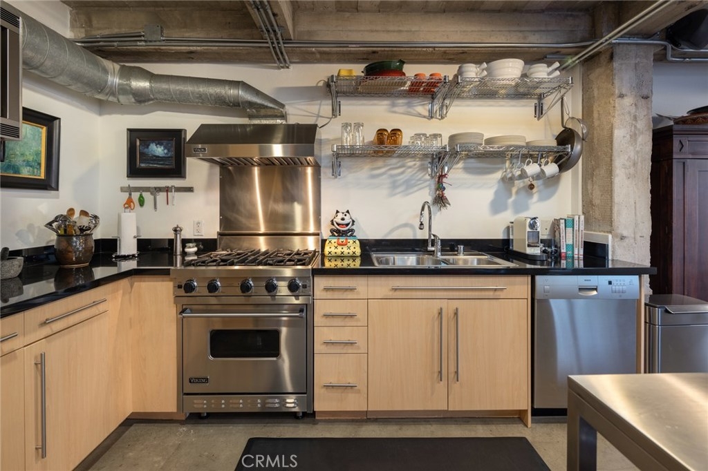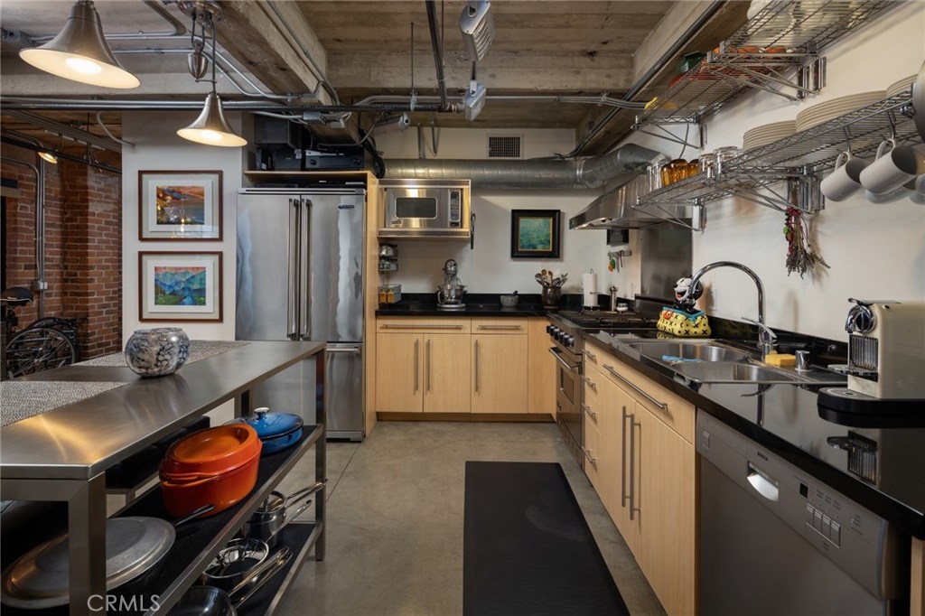 Welcome Home to unit 214 at the historical and iconic Masonic Temple Lofts! This single-story, end-unit loft exemplifies the best of loft living and the comforts of one of the most well-appointed buildings in downtown Long Beach. Open, flowing floor plan with original brick walls, polished concrete floors, and raw, concrete ceilings provide a sense of space and flow. Open concept industrial kitchen with Viking stainless steel appliances and granite countertops flex dining/living space is perfect for entertaining or for the creative who works from home. Large private patio with sliding glass doors provide a seamless indoor/outdoor transition to enjoy the SoCal evenings. Private bedroom area is cleverly sectioned off with modern sliders from the Sliding Door Company providing privacy and separation of space when desired. Central AC & Heat, secured parking, secured, private guest parking, community features include a fitness center, jacuzzi, fire pit, 2 separate BBQ areas, magnificent entrance lobby, bike storage, on-site maintenance, private storage areas and one of the most secure buildings downtown. Close proximity to dining, shopping, nightlife and public transportation in one of the most vibrant and trendy areas of Long Beach!