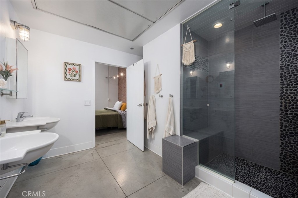 Welcome to Unit 421 at the iconic Temple Lofts, where historic character meets modern loft living in the heart of downtown Long Beach. This striking east coast–inspired loft features soaring concrete ceilings, polished concrete floors, exposed ductwork, and dramatic floor-to-ceiling windows that fill the space with natural light. The open concept floor plan creates a seamless flow between living, dining, and kitchen areas. The kitchen is well appointed with stainless steel Viking and Bosch appliances, granite countertops, and a custom-built island with seating—perfect for everyday living or entertaining. A custom brick accent wall adds warmth and character to the industrial design. The remodeled bathroom offers a spa-like feel with a two-person steam shower, while the spacious laundry room provides abundant storage. A thoughtfully separated bedroom area adds privacy while maintaining the open loft aesthetic. Step outside to your private balcony and enjoy views toward Signal Hill and Los Angeles. Temple Lofts offers exceptional amenities including secured parking, a fitness center, spa, BBQ area, guest parking, and a community clubhouse. This unit also includes one assigned parking space and a private storage cage. Ideally located near the best of downtown Long Beach dining, shopping, entertainment, and public transportation.