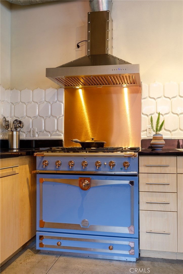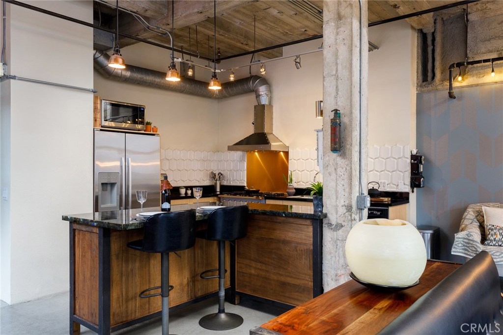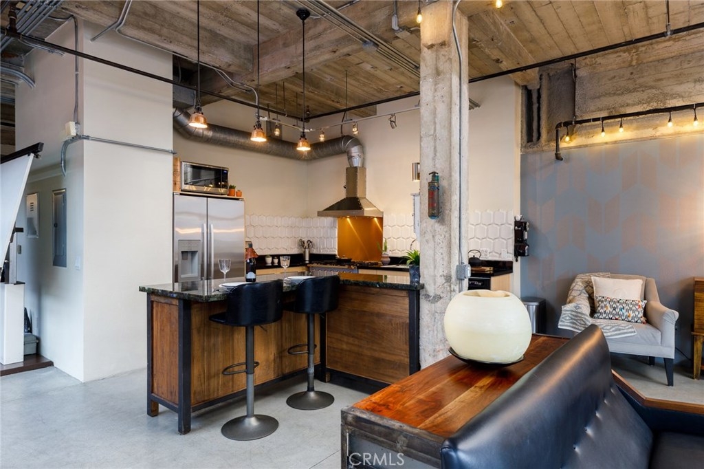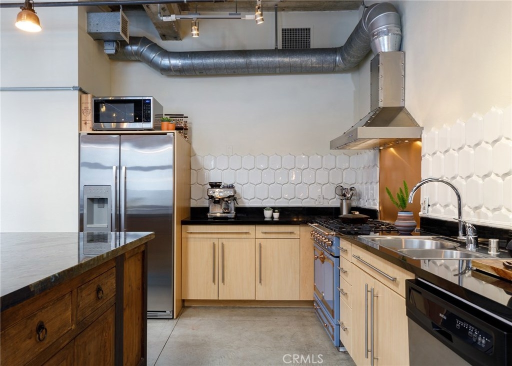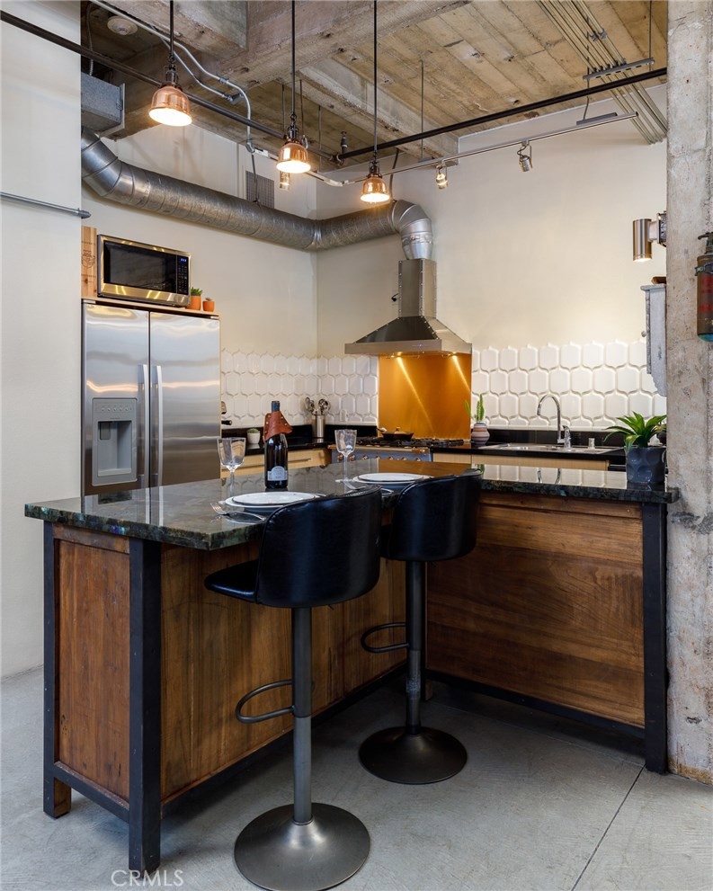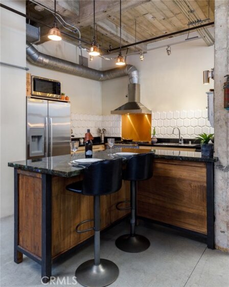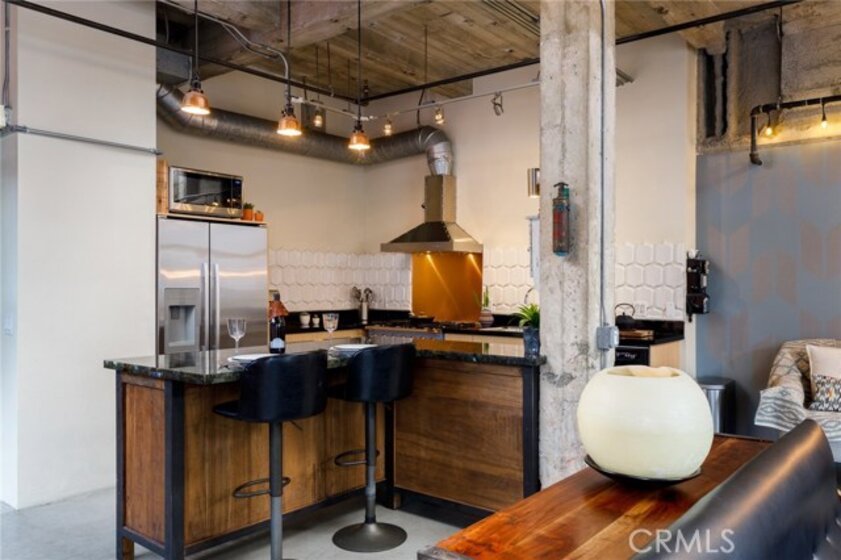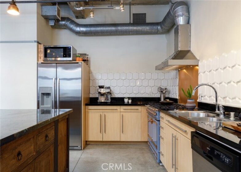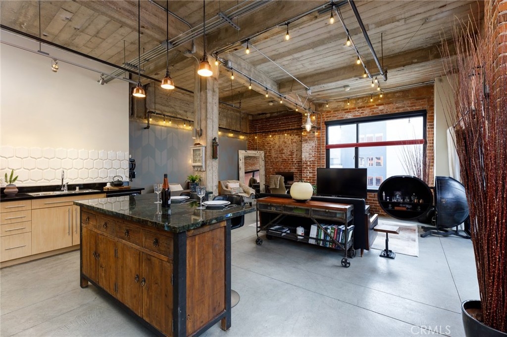Welcome Home to Temple Lofts! An incredible example of loft living at best! This 5th-floor corner unit features original brick walls, 13 foot high ceilings, polished concrete floors, industrial-grade windows, and an open-concept floorplan. Upgraded kitchen with custom Italian tile backsplash, custom island with Labradorite Lemurian granite with storage that doubles as an eating area, and a gorgeous Provence Blue La Cornue stove with copper accents with a ZLINE 36” stainless steel range hood. The upgraded bathroom features a custom vanity with vessel sink, Graff fixtures, LED ceiling lights, Edison sconces, and tiled walls. West and south facing views of downtown, custom painted accent wall, Central AC & Heat, secured parking, secured, private guest parking, community features include a fitness center, jacuzzi, fire pit, 2 separate BBQ areas, magnificent entrance lobby, bike storage, on-site maintenance, private storage areas and one of the most secure buildings downtown. Close proximity to dining, shopping, nightlife and public transportation in one of the most vibrant and trendy areas of Long Beach!