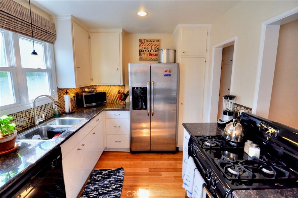 Beautifully upgraded and spacious 785 sq ft 1 bedroom/1 bath upper end unit condo in historic Carroll Park. This "beach-chic" condo has been lovingly renovated for comfort and modern function. Recent upgrades include newer AC/heat system, recess lighting and bamboo floors throughout with 6-inch baseboards. The open, remodeled kitchen features granite counters, glass mosaic backsplash, recess lighting, gas range, dishwasher and stainless refrigerator. The spacious bedroom is filled with natural light plus has a large closet and gorgeous chandelier. The remodeled bathroom has a period pullman with tile counter, built-in vanity and tub/shower with coordinating tile. The hallway area has tons of storage with built-in linen closets. The quaint Ailanthus community is a pet-friendly, well-maintained 14-unit complex with guest parking and super affordable HOA fees. It offers an incredible location within vibrant Carroll Park and a short stroll to retro row for great dining or even a movie at the Art Theater. Plus, it is super close to the beach or a quick bike ride to downtown Long Beach or Belmont Shore. Hurry! This one-of-a-kind, remodeled condo will sell fast!