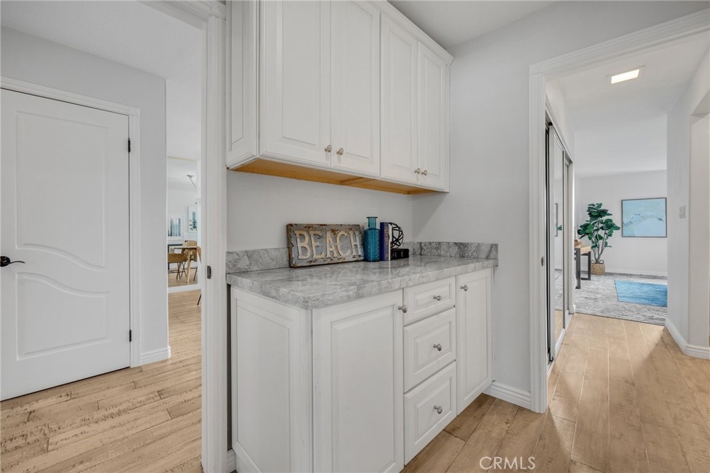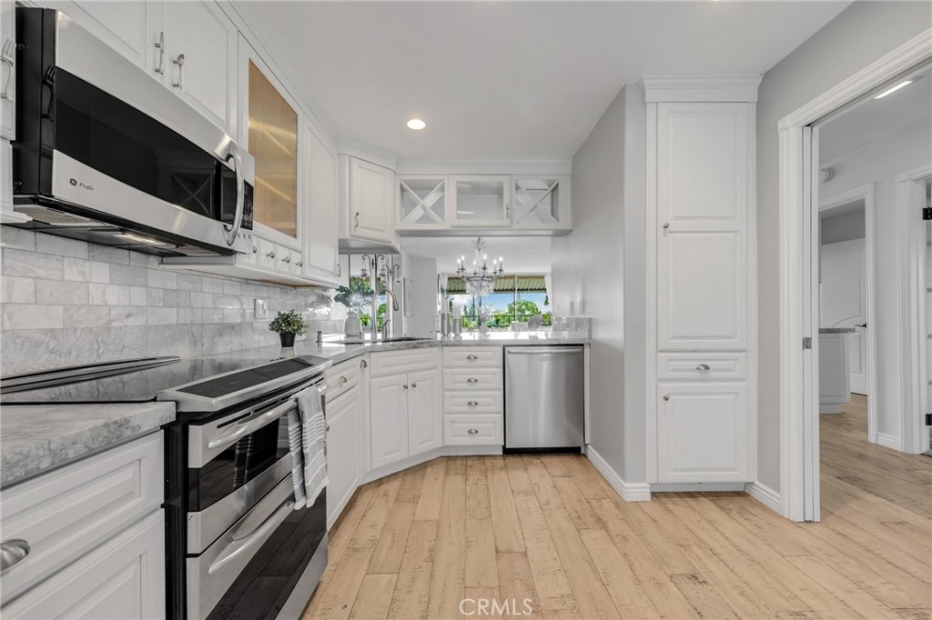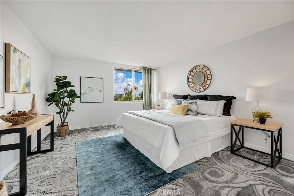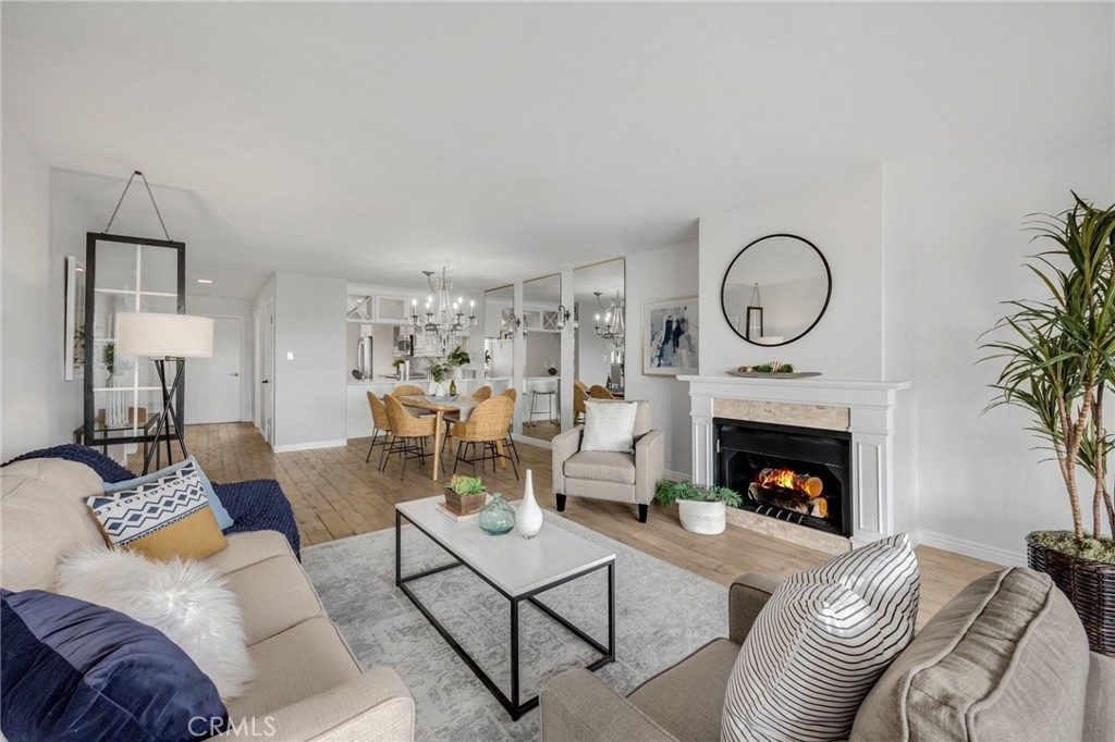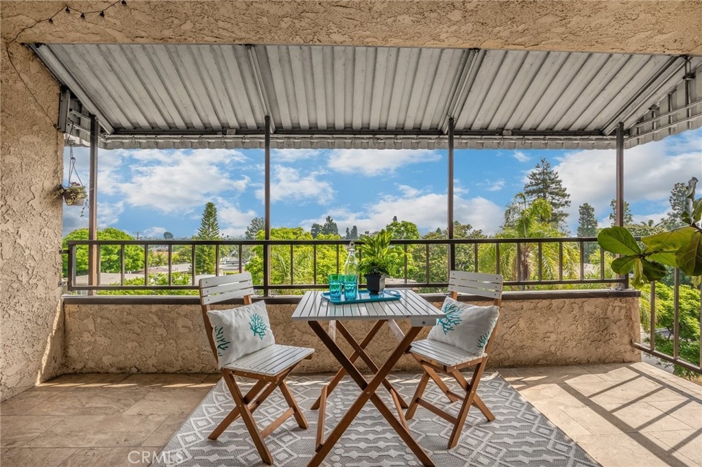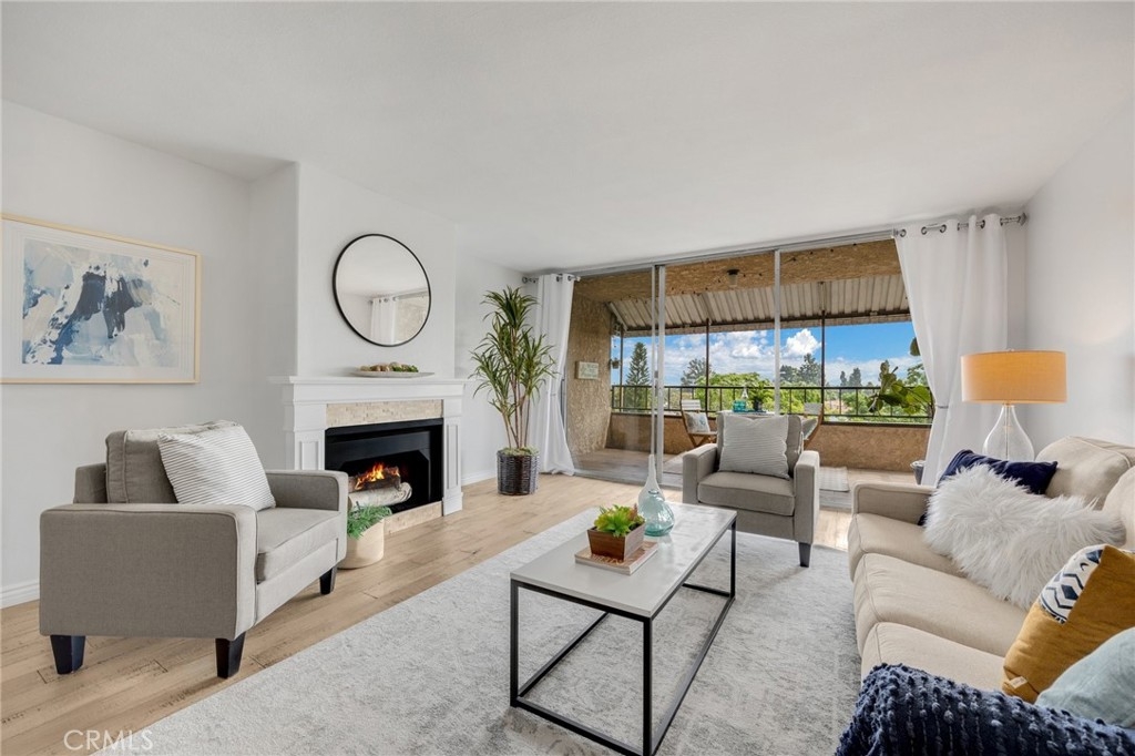 Stunning top-floor view condo in The Knolls. Thoughtfully renovated throughout this home offers a unique blend of modern elegance and classic charm. One of the rarest and most coveted amenities of this property is the PRIVATE 2 CAR GARAGE!!! This feature is an absolute rarity in condo living and sets this unit apart from the rest. It is only one of ten in the entire building with a private garage! As you step inside the home, you're greeted by an open-concept living space adorned with rustic wood plank flooring that adds warmth and character to the home. The kitchen is a chef's delight, featuring quartz countertops, a marble backsplash, stainless steel appliances, and a convenient breakfast bar. Whether you're hosting a dinner party or simply enjoying a casual meal, this kitchen will inspire your culinary creativity. The generously sized bedrooms provide ample space for rest and relaxation. The primary suite is a true retreat, boasting abundant closet space and a gorgeous primary bath with a luxurious walk-in shower, dual vanity and elegant pendent lighting. The hall bath exudes charm and nostalgia with a clawfoot tub and wainscoting detail, creating a perfect oasis for relaxation. One of the standout features of this condo is the large balcony, where you can savor your morning coffee while taking in the breathtaking views of the surrounding trees and on a clear day the mountains. This outdoor space is an extension of your living area, offering a perfect spot for alfresco dining or simply unwinding after a long day. Additional features of this home include plantation shutters, adding both style and privacy, and a cozy fireplace in the living room, ideal for creating a warm and inviting atmosphere on cool evenings. The building offers secure access, ensuring your peace of mind and safety. Situated in the heart of Bixby Knolls, you'll have easy access to the area's vibrant shops, restaurants, and parks. Commuting is a breeze with convenient access to major highways, making it easy to explore all that Long Beach and the surrounding areas have to offer.
