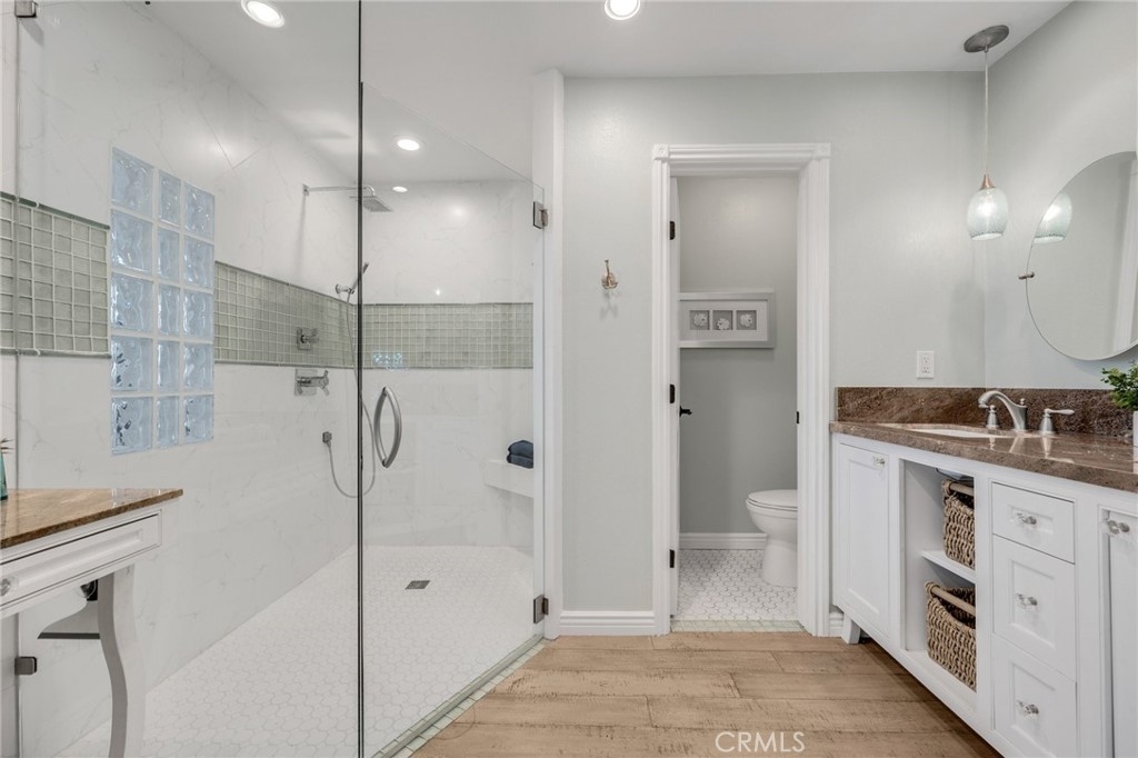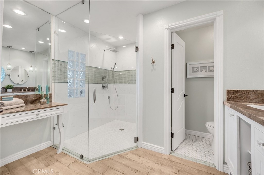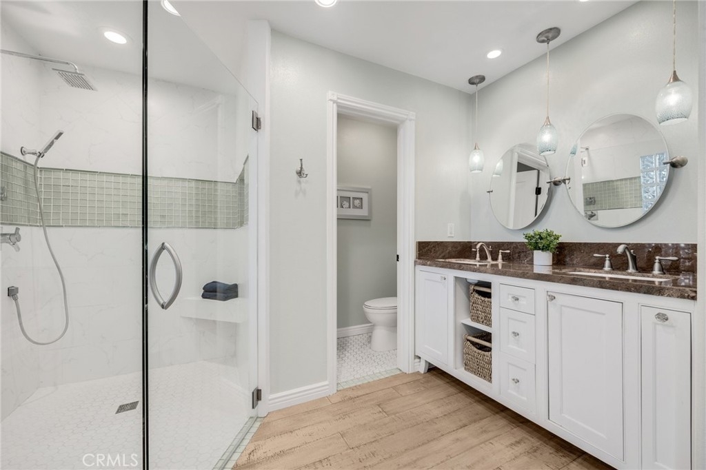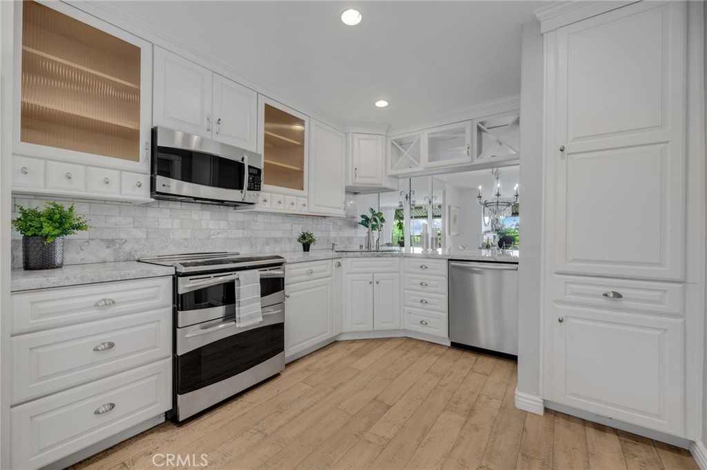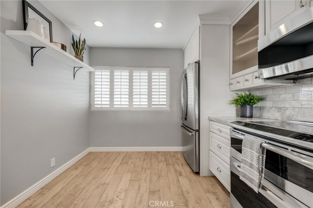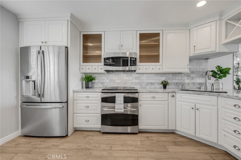 Stunning top-floor view condo in The Knolls. Thoughtfully renovated throughout this home offers a unique blend of modern elegance and classic charm. One of the rarest and most coveted amenities of this property is the PRIVATE 2 CAR GARAGE!!! This feature is an absolute rarity in condo living and sets this unit apart from the rest. It is only one of ten in the entire building with a private garage! As you step inside the home, you're greeted by an open-concept living space adorned with rustic wood plank flooring that adds warmth and character to the home. The kitchen is a chef's delight, featuring quartz countertops, a marble backsplash, stainless steel appliances, and a convenient breakfast bar. Whether you're hosting a dinner party or simply enjoying a casual meal, this kitchen will inspire your culinary creativity. The generously sized bedrooms provide ample space for rest and relaxation. The primary suite is a true retreat, boasting abundant closet space and a gorgeous primary bath with a luxurious walk-in shower, dual vanity and elegant pendent lighting. The hall bath exudes charm and nostalgia with a clawfoot tub and wainscoting detail, creating a perfect oasis for relaxation. One of the standout features of this condo is the large balcony, where you can savor your morning coffee while taking in the breathtaking views of the surrounding trees and on a clear day the mountains. This outdoor space is an extension of your living area, offering a perfect spot for alfresco dining or simply unwinding after a long day. Additional features of this home include plantation shutters, adding both style and privacy, and a cozy fireplace in the living room, ideal for creating a warm and inviting atmosphere on cool evenings. The building offers secure access, ensuring your peace of mind and safety. Situated in the heart of Bixby Knolls, you'll have easy access to the area's vibrant shops, restaurants, and parks. Commuting is a breeze with convenient access to major highways, making it easy to explore all that Long Beach and the surrounding areas have to offer.