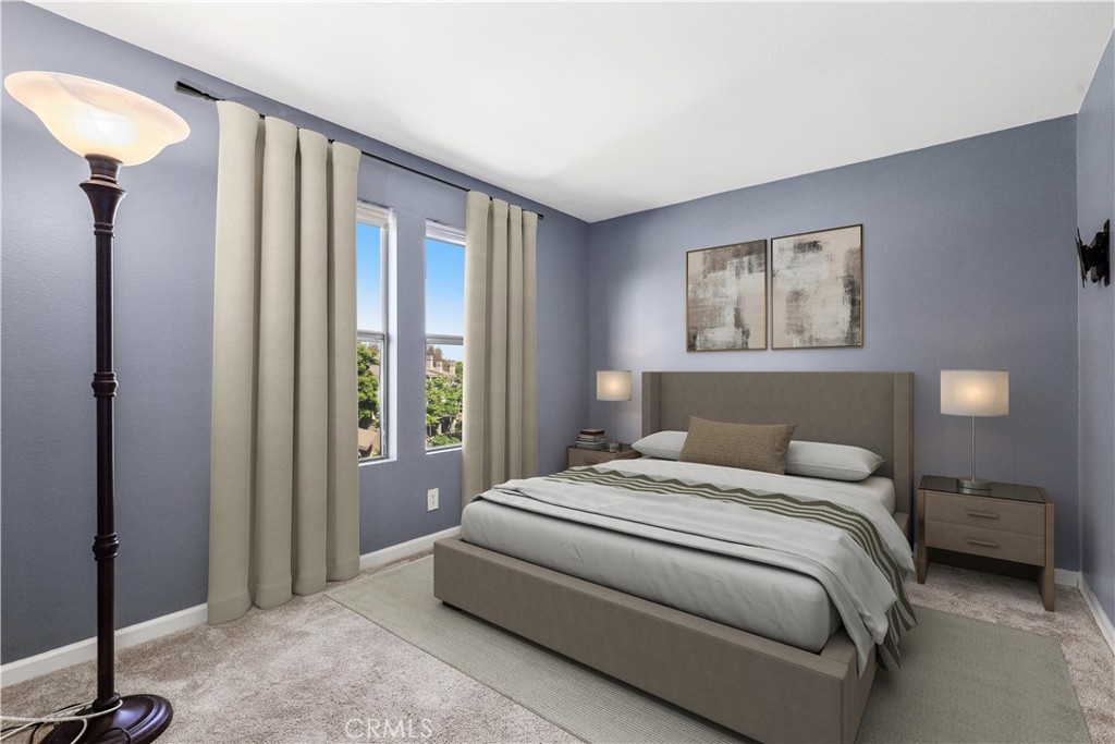 Top floor, end unit condo in The Palms in Long Beach! Views as well on a clear day of the San Gabriel Mountains from the primary bedroom and private balcony. Open kitchen with breakfast bar and additional storage, granite counters and stainless steel appliances. Each bedroom has own bath. Recessed LED lighting. Well maintained pet-friendly gated community, shared amenities including a fitness center, swimming pool, jacuzzi, outdoor BBQ and a clubhouse with fully furnished kitchen! This condo comes with TWO parking spaces - a dedicated garage with parking space for one car plus additional parking spot in front of the garage. Ten minute drive to Cal State Long Beach campus! Conveniently located for commuters to the 405 and PCH, go north or south in just a few minutes. Shopping at The Traffic Circle or a 10 minute drive north to LBX dining and vast array of options!
