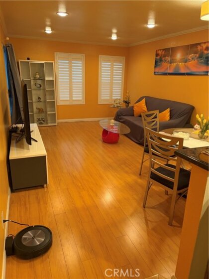 Experience elevated living in this stunning second-floor condo, beautifully updated with new carpet, fresh paint, and stylish new lighting. Ideally situated on the second floor yet accessible at ground level, this unit offers the convenience of STAIR-FREE ENTRY. The open-concept layout is designed to impress, showcasing crown molding, smooth ceilings, and sweeping views of the city skyline. The gourmet kitchen is a chef’s dream, boasting sleek shaker cabinets, granite counters, a serving bar, and stainless-steel appliances. The primary suite is a private sanctuary, offering direct access to the balcony, a generous walk-in closet, and a spa-inspired ensuite bath complete with an extended granite vanity, oversized mirrors, and a luxurious oval soaking tub. Additional highlights include CENTRAL AIR, central heat, and private laundry with washer and dryer included. TWO PARKING SPACES, one inside the GARAGE and an additional space in front of the garage (two car garage shared with neighbor), plus there's also a community parking permit for guests. Located within The Palms, a sought-after gated community, residents enjoy an array of resort-style amenities—including a shimmering pool, rejuvenating spa, fully equipped fitness center, and elegant clubhouse. HOA dues conveniently cover water, trash, and sewer services. Pet-friendly for one dog or cat under 35 lb. , the community is ideally situated near major freeways, upscale dining, retail shopping, scenic beaches, golf courses, hiking trails, and charming cafés. This exceptional residence offers the perfect blend of sophisticated style, everyday comfort, and unmatched convenience. VA APPROVED community.