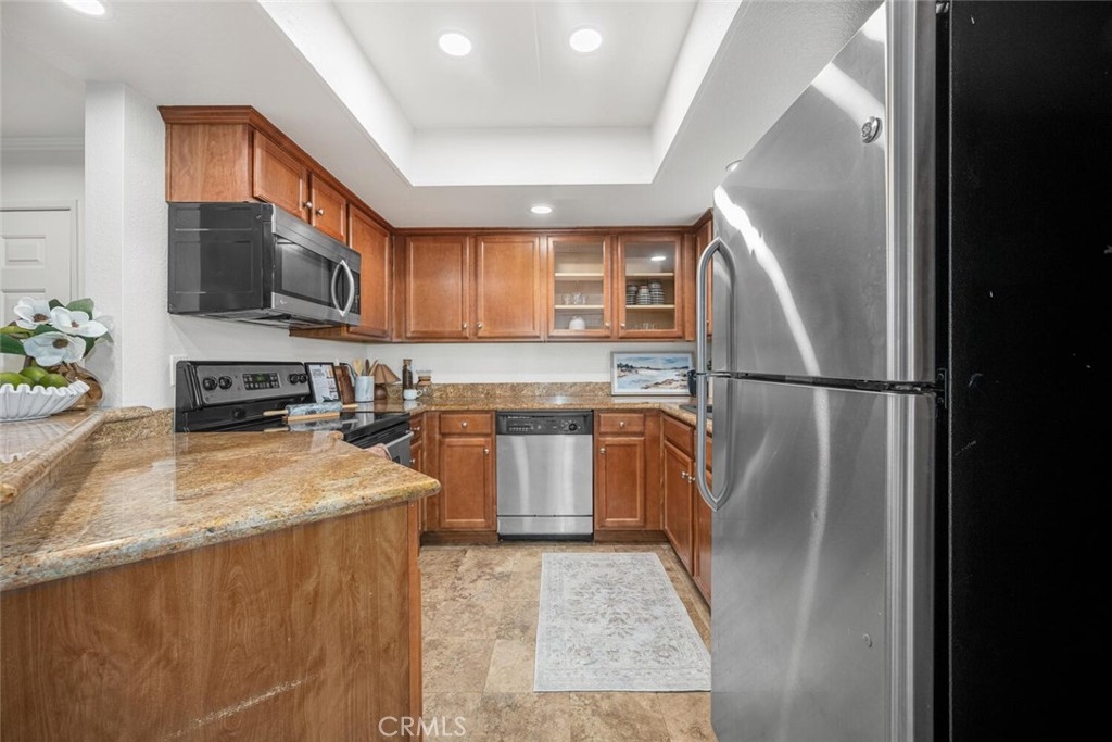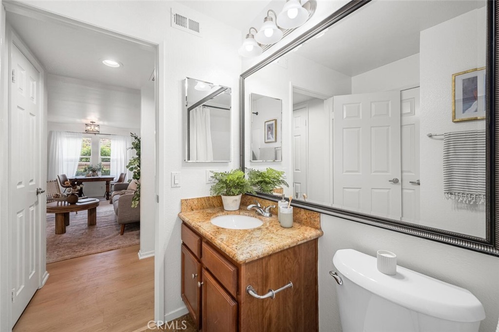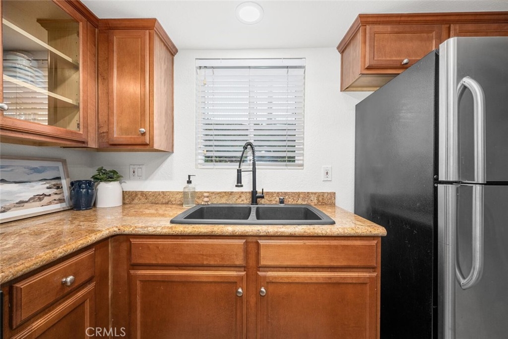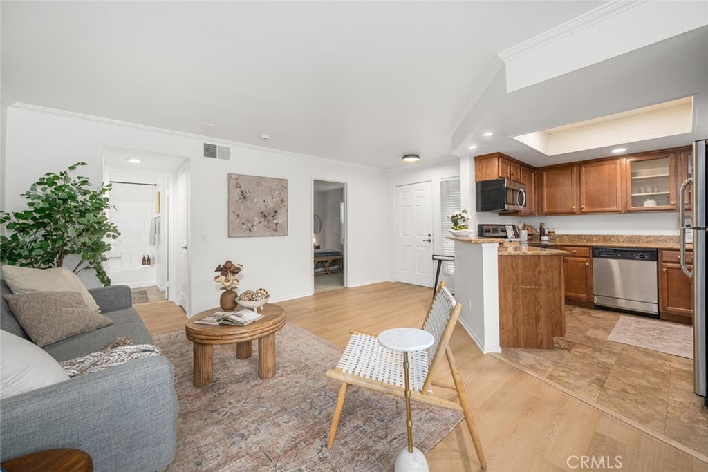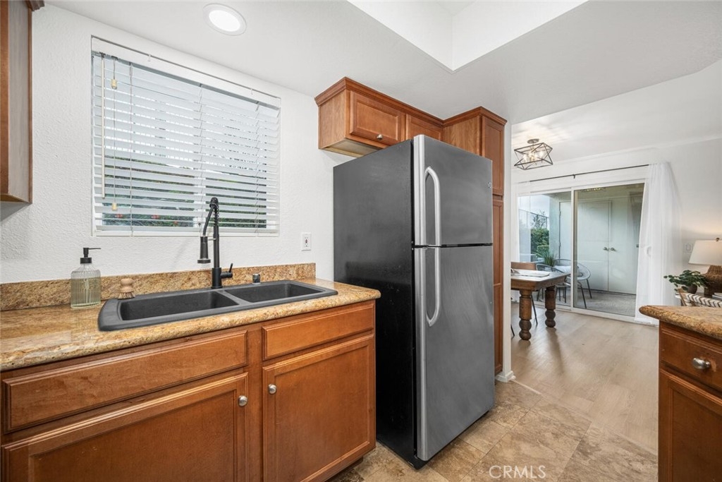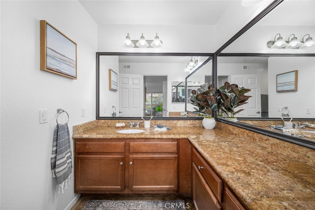 Welcome to this charming 2-bedroom, 2-bathroom turnkey bottom-floor corner unit in The Palms! Freshly painted with brand new vinyl flooring and carpet throughout, this home is move-in ready. The kitchen features granite countertops and stainless steel appliances, perfect for everyday living and entertaining. The spacious primary suite offers an ensuite bathroom and a slider that opens directly to the private patio. There is also a generously sized secondary bedroom, providing flexibility for guests, an office, or more. Enjoy your private entrance and a cozy patio with washer/dryer hookups for added convenience. This unit also features its own 1 car garage along with 1 driveway space for parking. With its thoughtful layout, fresh updates, and super convenient location, this is a home you won’t want to miss!