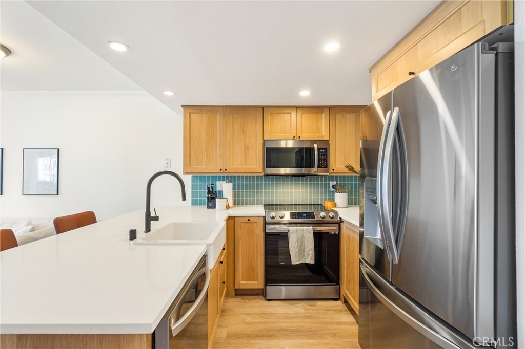 Welcome to the 3432 Hathaway #129 in THE PALMS community of Long Beach! This fantastic condo (with the most AMAZING NATURAL LIGHT!) has been COMPLETELY REMODELED and UPGRADED TO PERFECTION. (With permits!) This unit has a BRAND NEW KITCHEN with modern aesthetics, new appliances including an ample-sized wine fridge, and upgraded plumbing/electrical components. All new oak-style vinyl flooring has been installed throughout the condo. A light and bright bathroom has been upgraded to match the modern feel of the unit. ALL NEW HVAC condenser was just installed in August ‘23 with a corresponding new smart WI-FI enabled thermostat.This condo also has IN-UNIT LAUNDRY with tons of storage. Enjoy a cup of coffee or a glass of wine on the balcony that overlooks the beautiful landscaping and foliage throughout the community . The best part? TWO PARKING SPACES. This rare unit has a shared garage AND a driveway space in front. The community also has plenty of GUEST PARKING allowing you to comfortably entertain your friends and family. The GATED community also features a beautiful pool/spa and fitness center. Last but not least, PET FRIENDLY! Centrally located in the heart of Long Beach and low HOA fees, this condo can’t be beat. Don’t miss out!