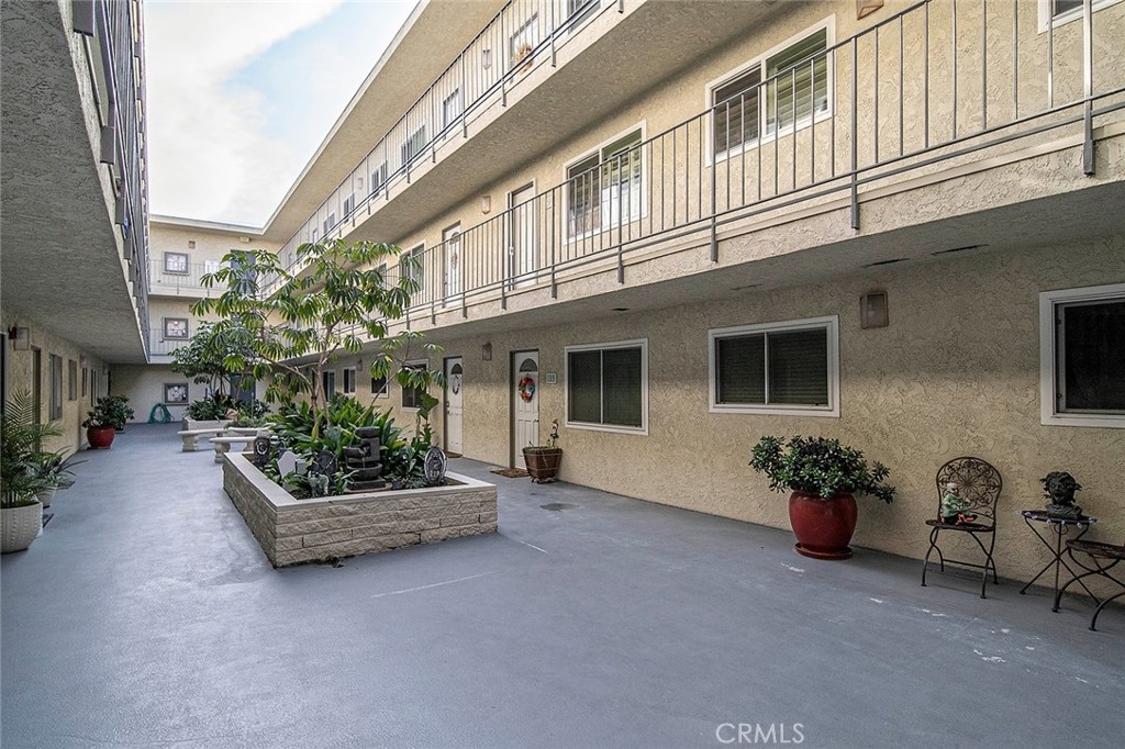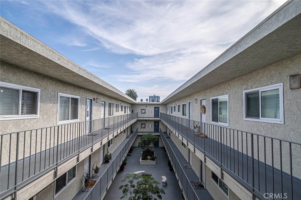 Location, Location, Location with a peek-a-boo ocean view says it all. In the heart of Bluff Heights, a historical neighborhood of Belmont Heights, sits a great courtyard style complex, only a few blocks to the beach, bike path, retro row, shopping, restaurants, entertainment, parks, dog parks, play ground, farmers markets, concerts in the park and so much more. Large top floor condo with a scenic West facing balcony with panoramic views of the ocean, the port and rooftops, so very private and inviting with an ocean breeze. Clean and ready to move in with scraped ceilings and laminate floors in living, dining and kitchen areas and carpet in the bedroom. Large walk-in closet in the extra large bedroom. The bathroom has been remodeled with a stand alone vanity and shower. All windows and balcony sliders are updated with dual pane windows and there is an A/C wall unit in the living room. This is a secured access building with an elevator and community laundry room on every floor. There is 1 parking spot with private storage in the underground secured parking garage. Low HOA $267 and includes water, trash and sewer, insurance, management and controlled access and also pet friendly. Only Electric grills are allowed on the balcony per City of LB. Laundry room is located opposite of the elevator and is on every floor. In unit laundry is allowed to be installed inside the unit. There are also 2 extra HOA owned parking spots raffled off quarterly for use 3 months at a time for $40/per month. Don't waste another minute, come see it before it's gone and you could be in by the holidays!!!